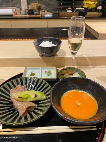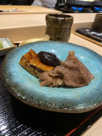 同朋友一齐试试新店寿喜烧,之前食过呢间既omakase 都好掂又抵食,今次见有新野寿喜烧set就试下,师傅话关西口味比关东口味比较冇咁甜,我钟意少甜所欲我觉得甜度适中,好啱我口味。今次拣既系寿喜烧980套餐,超级饱呀好满足!sake仲要买一送一一个套餐原来都几多野下,有先付,前菜,时令刺身三款,寿喜烧有日本A5和牛唔同部位!野菜五款仲有渍物,樱花虾滑蛋饭,味增汤,米饭任装,就算真系唔够饱仲可以追加。师傅好风趣幽默,同埋好细心介绍每一道菜,服务员都态度有礼貌主动问够唔够食,店内整体感觉好舒适。先付:熊仔最中饼有海胆同和牛他他,卖相可爱好适合打卡。前菜:水发菜,菠菜同三文鱼子海胆豆腐。好好味个豆腐好香浓。刺身:网烤梭子鱼,赤身酱油渍配柚子胡椒好特别,刺身中拖罗同大拖罗。季节料理:香煎北海道银鳕鱼香软嫩滑寿喜烧:日本宫崎5A和牛三个部位肉眼齿颊留香,西冷口感丰富,牛肩味道浓郁。有几种菜菜有豆腐有菇京葱。滑蛋樱花虾盖饭吸收晒牛肉嘅肉汁再淋喺个饭上面非常之香滑。最后蒟蒻粉丝加上蛋汁一齐食爽脆弹牙。最后仲有甜品!自家制红豆绿茶布甸配蜜桃瑞士卷,绿茶布甸唔算好甜绿茶味道浓郁非常之唔错👍🏻有惊喜,体验感好好,回味无穷,下次会继续光顾!听讲两人同行点赞社交媒体网站会有串烧拼盘或者野饮送😻…Read More