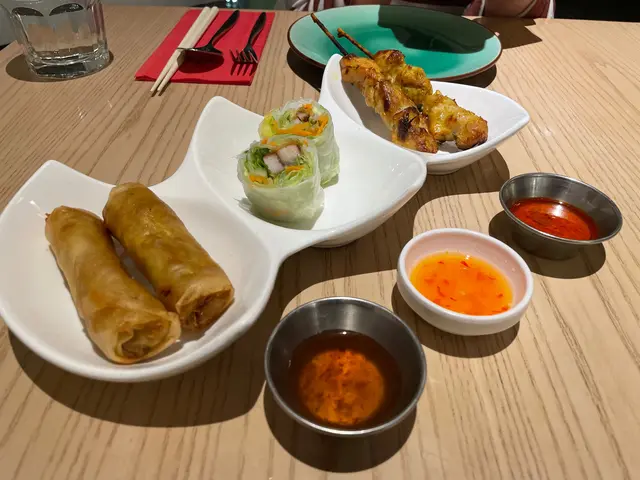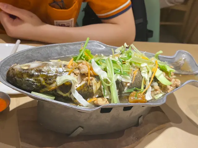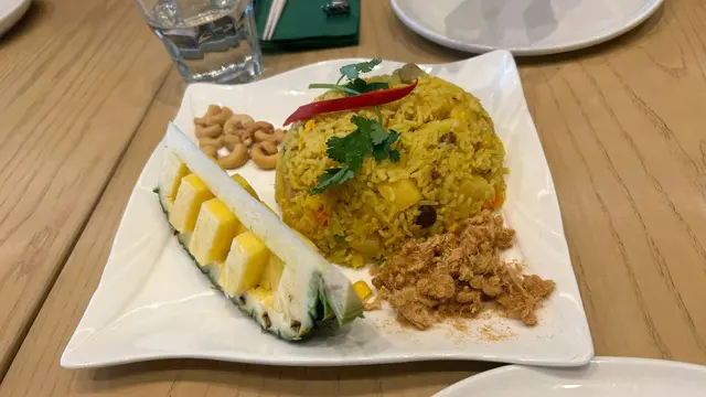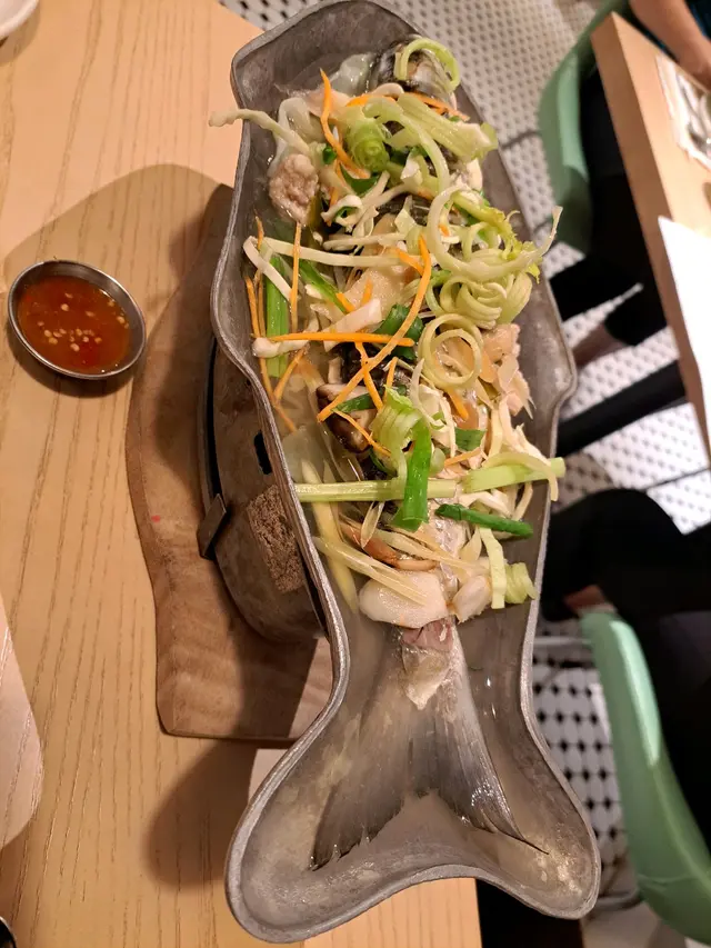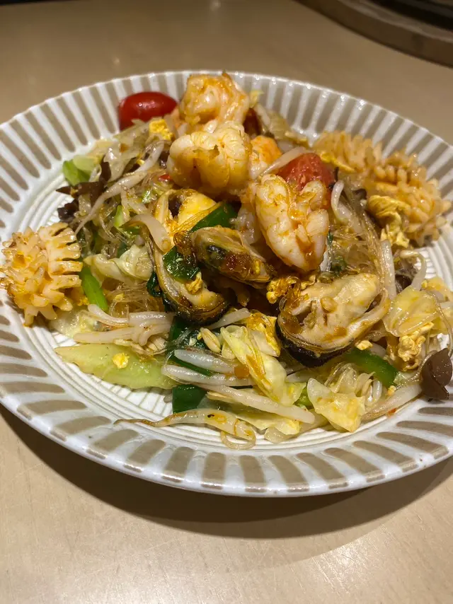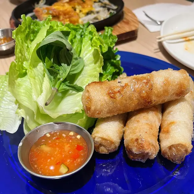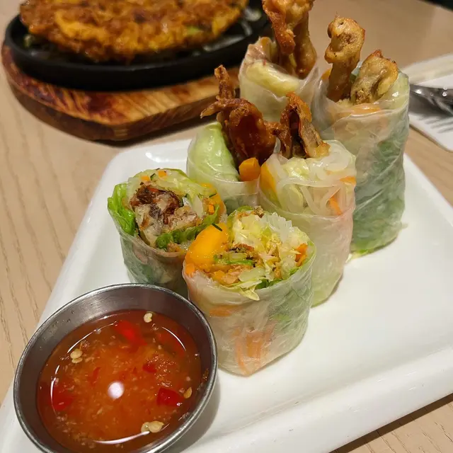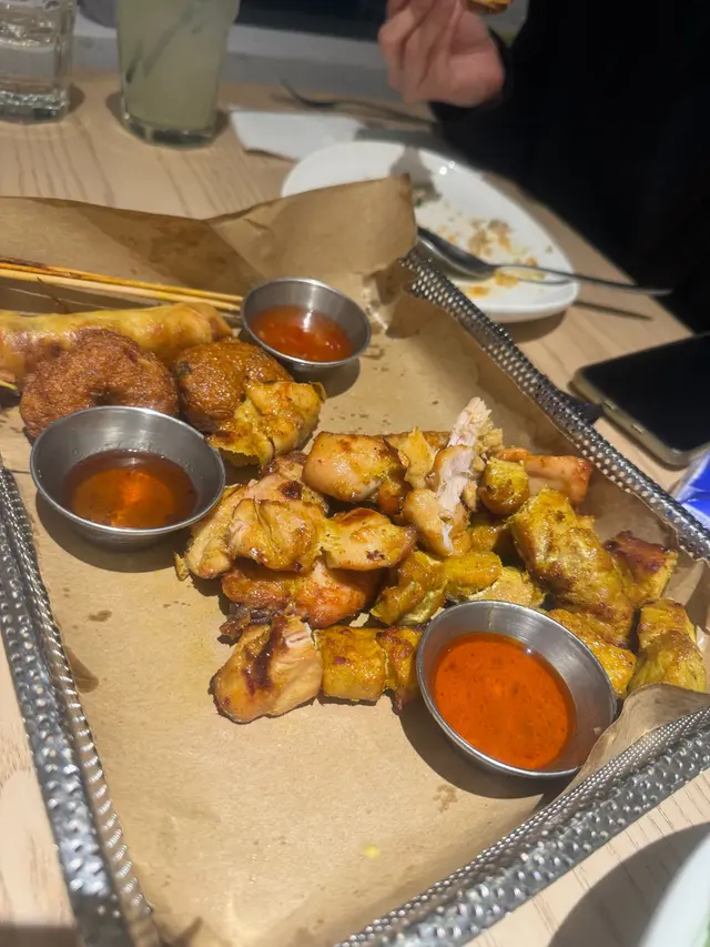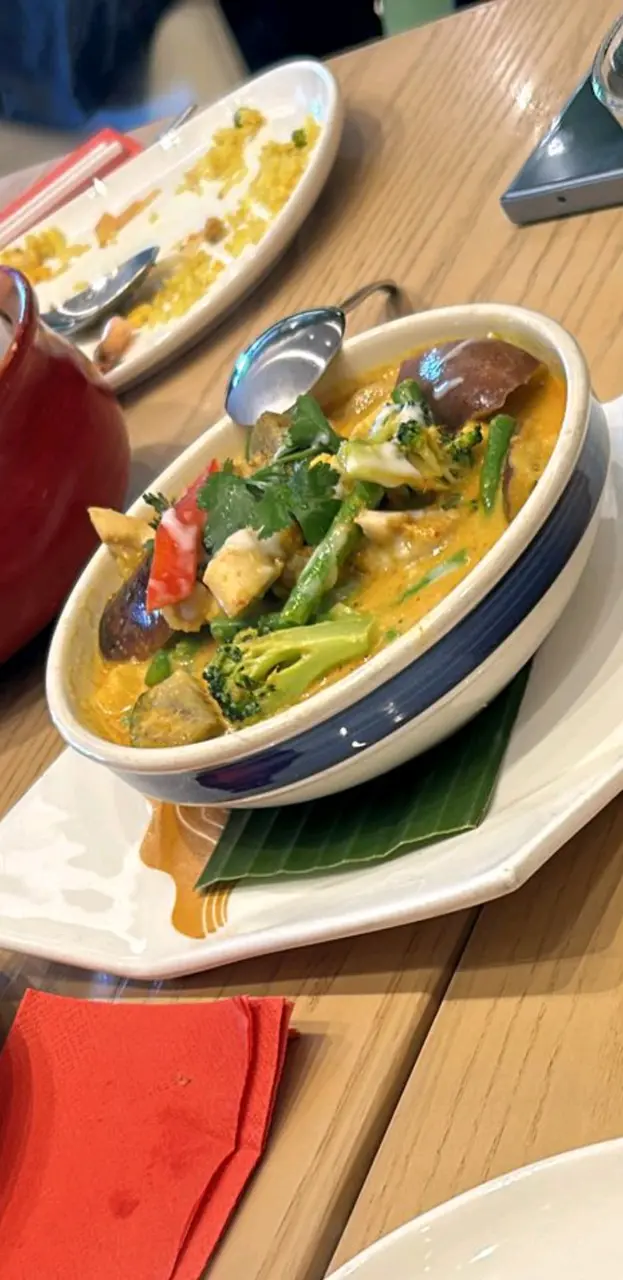觀塘一日到黑都好多人,好多時間都要排隊,最近太熱唔想係外面排隊,就選左間係商場入面既泰菜,諗住坐得舒服D。門面唔大但原來入面好大,佢係L 形佈局所以睇唔到。甘我地都比較肚餓,就叫左個晚巿二人餐,睇黎都幾多野食,份量都唔細!首先有個小食拼盤,每樣小食都配唔同既醬汁,個沙嗲醬做得好好,配串燒一流。春卷炸到脆身,入面係蝦肉都幾正,隻汁就係似泰式辣醬甘,幾開胃。米紙卷就不過不失,無話好好食,串燒幾惹味,肉質仲係滑既!唔錯!冬陰公湯酸辣味重,仲有好大隻蝦仁,好開胃,依個讚!炒雜菜黎講個配搭都幾特別,係蓮藕,秋葵,木耳,粟米筍,豆角等等,味道唔錯有少少鍋氣,而蓮藕炒到爽脆,係幾好食既,夠曬清淡健康!海鮮咖哩隻汁係似咖哩蟹甘用蛋汁收芡,味道係甜咖哩,配搭上唔同既海鮮,都真係唔錯。就甘輕輕一數都有5種海鮮,青口,蟹肉,魚片,蝦,魷魚等等,依個菜可以撈飯吃,幾下飯👍蒜香骨就略嫌失色,雖然好大舊但係肉質比較硬,骨位比想像中多,肉既話得幾舊。蒜味亦未有好特出,面頭既炸蒜份量本人覺得唔太夠,未食完碟菜下面既肉已經無曬蒜味。整體黎講加一大約500蚊既話有d 貴,可以一試,如果再試既話可以試炒野,隔離既炒飯聞到好香應該唔錯。…查看更多