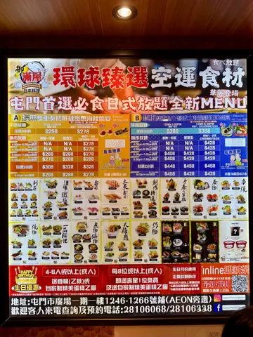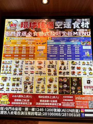 呢间位于屯门的日式放题御满屋环境宽敞舒适,食物选择超级丰富,价钱合理,适合一家大细去食。佢哋有多款新鲜刺身任你拣,三文鱼厚切鲜嫩,甜虾弹牙甜美,象拔蚌爽脆多汁,绝对系高质素选择。烧烤食物一样出色!烧乳鸽皮脆肉嫩,香气扑鼻,烧蚝同烧扇贝新鲜肥美,烧到金黄边缘,配埋蒜蓉,超级惹味。其他冷盘都好吸引,有虾、蚬、青口等任食!虾新鲜弹牙,蚬同青口肥美多汁。呢度海鲜冷盘供应充足,任食唔驶担心。冷盘除咗海鲜,重有我最钟意嘅小食!猪耳爽脆有咬劲,配埋辣椒油超开胃,泰式凤爪酸辣入味,香辣鱼皮脆脆辣辣。甜品系压轴好戏,选择多到眼花撩乱!柚子芝士蛋糕清新酸甜,芝士浓郁唔腻。芒果布甸滑溜香浓,芒果味浓郁。木糠布甸层层分明,脆脆木糠配埋忌廉超正。香芋布甸芋头味浓,甜度适中。重有多款雪糕同雪条选择,包括Movenpick嘅高级雪糕,能得利雪条,Mega雪条,仲有原个芒果雪条,芒果味超真实,食落凉快又满足。总结嚟讲,屯门御满屋放题性价比高,绝对值得一试!…查看更多