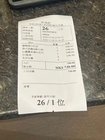 御泷轩位于铜锣湾南华体育会,以传统粤菜及点心为主打,餐厅装潢简洁明亮,带有老香港的怀旧感!店内座位宽敞,亦设有包厢房,方便客人选择。滋补养颜炖汤:羊肚菌螺头炖竹丝鸡螺头和鸡肉的鲜味完全渗透汤中,使汤汁既浓郁又鲜甜,而羊肚菌则带来自然的菌草香,令人回味无穷。xo酱荀爆松板肉:松板肉口感脆嫩、有嚼劲,烧炒后更凸显油香与猪肉的自然鲜甜。搭配XO酱激发出酱香浓郁、带有微辣且咸鲜的层次感。腊鸭脾炒花菜:腊鸭脾炒花菜呈现出咸香浓郁、带点烟熏味的腊味,搭配花菜的鲜甜脆嫩,在蒜香与葱辣的提香下,味道层次丰富。泰式菠萝海鲜炒饭:炒饭粒粒分明,镬气和香气十足,带有浓郁的泰式香料风味,酸甜开胃。材料加入了带子、虾仁、菠萝粒、葡萄干和肉松,味道和层次感丰富。…查看更多