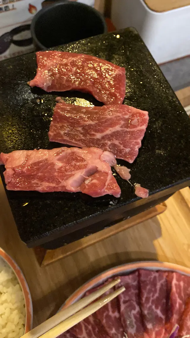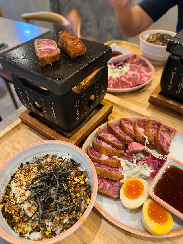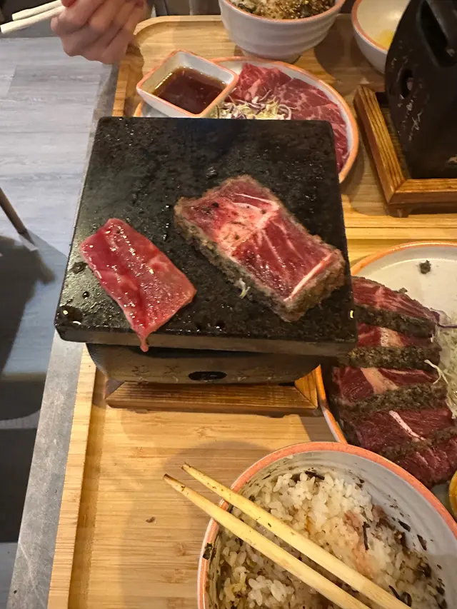 前排去左旺角嘅御石燒食飯價格好親民 六十幾蚊就有一個便當啦👍🏻不過一場黎到,試下佢地既燒肉先🤤招牌菜,特級牛小排,只係$158佢哋嘅特級牛小排份量好足夠,有15塊牛小排,非常豐盛😋😍牛小排嘅花紋好靚好均勻,肉嘅肥瘦適中,質感好好❤️❤️御石燒嘅特色係佢哋嘅石燒爐,呢個爐火力夠強,因為牛小排切得偏薄,所以只需要簡單燒一燒,兩邊就會好快熟牛肉經過石燒爐嘅高溫燒烤,外表有微微焦香,內裡保持肉汁,味道鮮美🧡咁juicy 既牛肉,一定要配埋紫菜味素飯同埋流心蛋蛋黃流出,混合埋牛肉一齊食,味道更加豐富🤤😍御石燒價錢實惠,服務亦都好友善,係一個可以帶埋朋友同家人嚟享受日式燒肉嘅好地方❤️❤️❤️…查看更多
