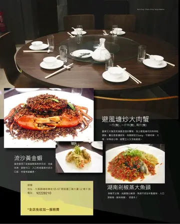 这间拥有13年历史的私房菜位于观塘敬运工业大厦,主打手工粤式海鲜料理,由经验丰富的主厨掌舵,每道菜均用心烹调,坚持选用每日新鲜到货的生猛游水海鲜—「不时不食」,明码实价且价钱相宜。店内环境宽敞舒适,装潢采用中式为主,墙上张贴不少影视名人曾光顾的合照。晚市时段设有二至十二人套餐,丰俭由人,更可按预算及口味设计菜单,小朋友不强制计人头,可另加小菜或饭面,适合家庭聚会、公司晚宴及团年春茗等。全日免开瓶费、免切饼费及免加一,自备酒水更可提供冰桶、酒杯及食用冰;代蒸寿桃包亦免费;完成指定任务可免费换汽水。两位用设计菜单 - $1180卤水鹅肝鹅肾(庆祝生日送,不限正日)鹅肝在卤水中慢炖入味,粉润细致好绵密,入口有微微化开,有浓郁的鹅肝香气;鹅肾保持烟韧有劲,两者均充满卤水香料的风味。脆皮玻璃乳鸽1只采用炸子鸡方式,重复以油浇淋上乳鸽身,外皮烤得薄如蝉翼,色泽金红油亮,薄脆不腻,里面的鸽肉却依旧嫩滑多汁,带著淡淡的咸香与脂香,越嚼越香。白胡椒韭黄炒鳝柳(例牌)全新菜色,一片片鳝柳结实弹牙有嚼劲,处理得极为干净而不腥,大火爆炒带有锅气与焦香,自家研磨白胡椒的香气更浓郁立体,韭黄鲜嫩多汁,咸鲜中带著微微辛香。芝士龙虾(12两)肥美饱满的龙虾紧密有嚼劲富弹性,锁住丰富的肉汁好鲜甜,金黄色的芝士有微微拉丝,完美融合醇厚香浓。蒜蓉粉丝蒸大元贝(2只)大元贝的贝肉硕大饱满,质地紧实弹嫩,充满著鲜甜的汁水,蒜蓉的香气完全释放,粉丝吸饱了蒜蓉酱汁与贝肉的鲜汁,软糯入味且鲜香十足。士多啤梨骨排骨炸得外酥内嫩,肉质软腍多汁而不柴,均匀裹上酸甜的士多啤梨酱汁,不仅中和排骨的油腻感,还增添了果香的清爽,甜而不腻、酸而不涩。蒜蓉炒时菜新鲜翠绿的小棠菜纤维细致,清脆带有甜味。蟹油银芽炒面面条炒得干爽弹牙,有蟹油独特而浓郁的鲜香,银芽脆嫩爽口增添层次感,鲜香十足又不油腻。抹茶奶冻质地细腻嫩滑得入口即化,清香淡雅的抹茶带微微的甘醇,甜度刚好而不腻,奶香味与抹茶味平衡得恰到好处,撒上酸甜有嚼劲的无花果干,清爽解腻。…查看更多