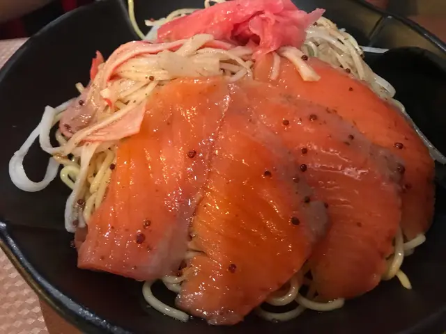 🥢紅磡睇演唱會前快食日式冷麵🥢呢排個個都去睇Joey 演唱會,睇show 前最方便就是去旁邊商場食個飯,然後快快入場🥢泡菜雞絲涼麵 $66 附飲品需加一涼麵真的很適合夏天食,味道就不意外是用普通日式芝麻醬,加上辣辣的泡菜,涼涼的好開胃🥢煙三文魚涼麵 $68 附飲品需加一有三塊大大的煙三文魚,醬汁是甜甜的感覺,加上蟹柳絲,麵質拉麵算ok,不會太軟身🥢凍麵好啱趕時間的人去食,可以好快就食完一餐的感覺,快快去睇演唱會,而且算比較坐得舒服的御麵の坊地址: 紅磡都會道6-10號置富都會7樓754號舖查看更多
