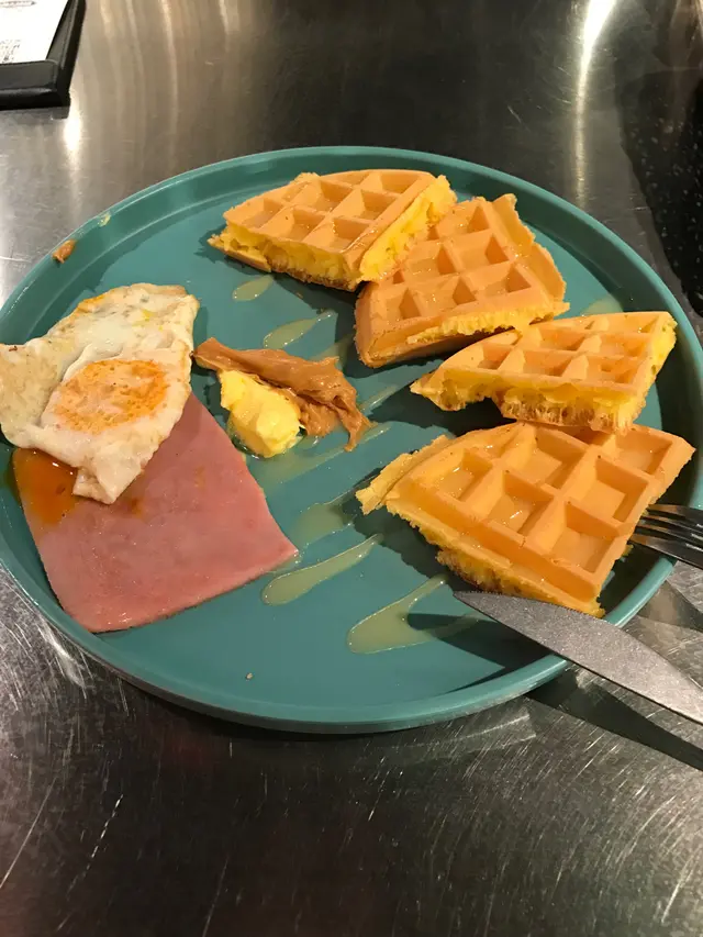 路過左好多次,一直都未試今日見唔算太多人,咁就即管試下個早餐啦裏面嘅裝修係幾特別,都幾適合打卡用咗啲好傳統嘅舊式椅桌,想營造啲舊香港嘅氣氛,跟住又有啲霓虹燈招牌。一啲大排檔會掛出嚟嘅水牌啦,同埋有啲舊式酒樓嘅柱我試咗一個特別小小嘅早餐,格仔餅加煎蛋火腿早餐。格仔餅都的確幾鬆脆,一咬卡卡聲,可惜佢個賣相就有待改善,冇收邊,似係用手就咁搣開咁😅😅😂😂我見隔籬枱嗰個幾靚先order 依個👉🏻👈🏻煎蛋火腿就冇乜特別啦,奶茶都幾香濃又滑嘅清潔方便,個地下有啲黏住我對鞋🫠啲職員係幾有禮貌嘅,依個就讚一讚查看更多