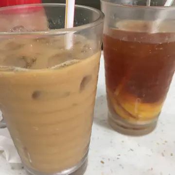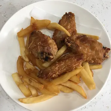 事关红豆冰觉得唔值依个价,所以一人一杯饮品加个鸡翼薯条。 冻鸳鸯($16)茶底唔够浓,基本上饮到既系奶。冻OT($16)都系茶底唔浓,变相饮柠檬糖水。 鸡翼薯条($38)招牌果然系招牌,鸡翼大大只又好味。薯条就冇乜技术可言,又唔系自己整。同埋有几条炸到好黑索哂油既,贸素都参差。讲紧如果系招牌既,我唔会比果几条B品既薯条比人食。