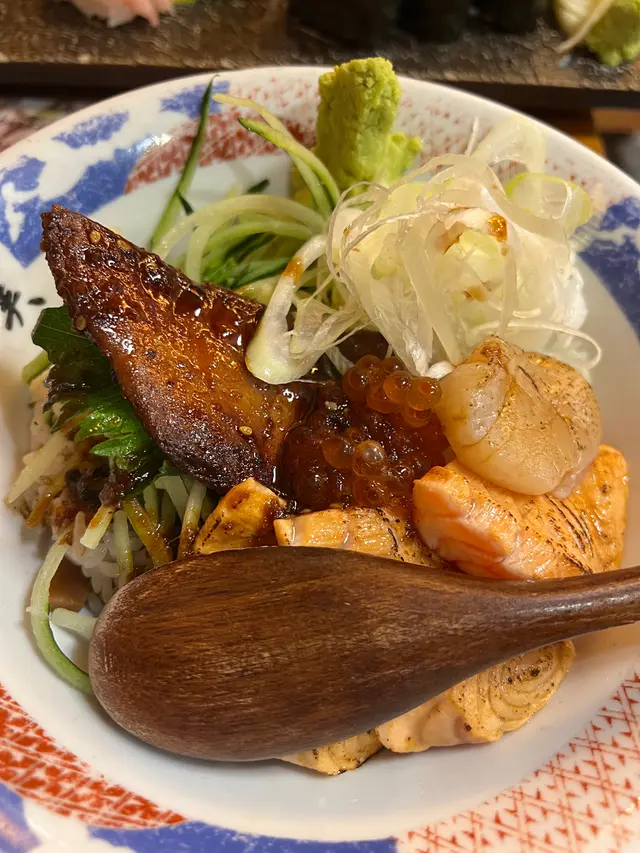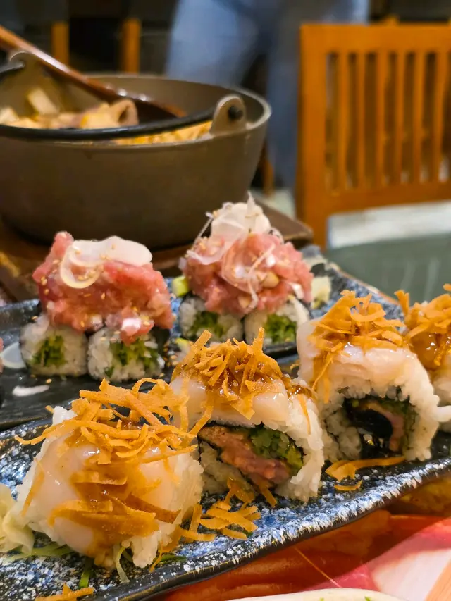 進入這家歷史悠久的木系日式居酒屋,彷彿踏入了一個承載著文化和美味的時光隧道。特上壽司拼盤B展現了大師們的匠心獨運,吞拿魚、三文魚、池魚、油甘魚、帆立貝等新鮮食材搭配海中珍珠——海膽每一口都是對味蕾的極致享受。鵝肝帶子三文魚丼帶來了濃郁的鵝肝風味和新鮮三文魚的完美結合,口感層次豐富,讓人回味無窮。烤羊架的獨特調味和嫩滑的肉質讓人驚艷,每一口都散發出濃濃的幸福感。最後,牛油果軟殼蟹卷帶來了意想不到的組合,牛油果的香濃與蟹肉的鮮美相互輝映。查看更多