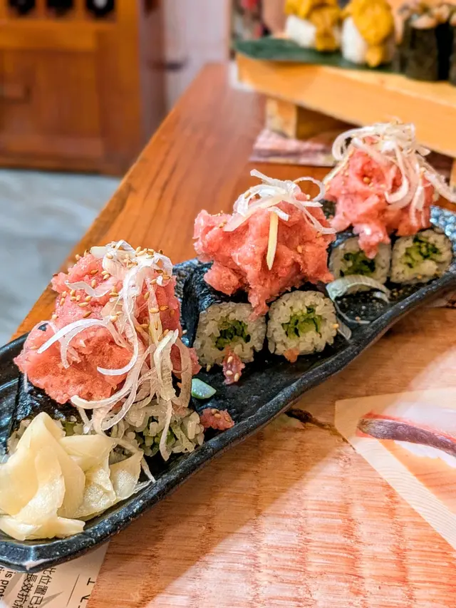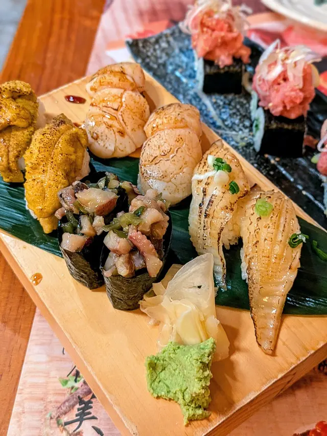 🍣 鮮蔥吞拿魚腩茸山必點吞拿魚腩茸的細膩油脂與鮮蔥的清香完美融合,每一口都像在嘴裡融化💖🦑 芥辣八爪魚軍艦八爪魚的彈牙口感搭配微微刺鼻的芥辣醬汁,因為呢種刺激味蕾既感覺,所以每次都會點。🐟 火炙日本左口魚邊經過火炙的左口魚邊,豐富的油脂被激發出來,入口即化,魚香濃郁,帶著絲絲焦香感 ✨🐡 火炙海膽壽司海膽的鮮甜與火炙的香氣交織,濃郁海洋風味,本身都擔心唔新鮮,但完全鮮甜💛🦪 火炙帆立貝壽司帆立貝厚身又甘甜,口應滑嫩 😋🥗 野菜天婦羅作為壽司的完美配角,野菜天婦羅炸得金黃酥脆,外層薄而不膩,蔬菜的清甜得到充分保留,覺得健康又邪惡🌿😈送既甜品,入面紅豆蓉,唔太甜幾好食。查看更多