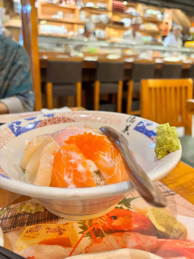 好耐無食壽司同丼飯,特然好想去食下,今日收工同同事去做樓下呢間好多人推薦既日本餐廳試下先🇯🇵呢度一望落去就好有日本風格,出面既裝修都以日本風格為主,入到去係好簡約,又有魚生,丼飯🍱烏冬,壽司🍣燒烤,超多選擇,性價比好高,d魚生係超新鮮,超推薦🌟北海道甜蝦帶子魚生丼上面有4種吾同既魚生🍱甜蝦隻隻都好大隻,好鮮甜,帶子真係好大粒,粒粒都係好彈牙,魚子食落去d精華都係個口到爆開,好濃郁既魚香味,而三文魚係好新鮮,紋理分明,一啖落去成口既魚油精華,超正🌟天婦羅烏冬定食我揀左熱食既湯烏冬,d烏冬係煮到好彈牙,個湯地都好鮮甜,天婦羅係即叫即炸,脆卜卜,番薯天婦羅都好香甜🍠炸蝦天婦羅更加係好大一隻,慢慢既蝦肉🍤個定食仲有面豉湯同咪好開胃既沙律🌟火炙鵝肝壽司D鵝肝係超肥美,上面既鵝肝經過火炙燒完會將鵝肝既精華滲透出黎,一擺入口已經聞到鵝肝既香味🍣一啖落去係入口即化甘,成個口都係鵝肝既味道,好滑,好嫩🌟洋風三文魚壽司三文魚係超厚實,上面加左芝士再火炙🍣好香口,入口d三文魚係好嫩滑,魚香包圍左成個口查看更多