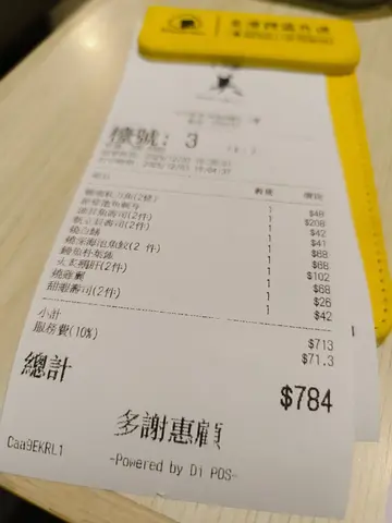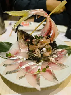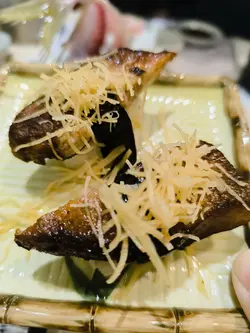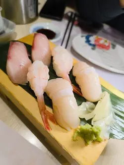 油甘鱼腩刺身一客有6片。鱼腩部分甚至肥美,有入口即溶的口感。肉质细腻,丰腴的鱼脂油香令人齿颊留香