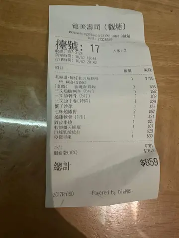 寿司款式多样化,从经典握寿司到创意卷寿司都有~ 北海道原修秋刀鱼刺身:鱼肉鲜甜油脂丰富,口感嫩滑带轻微咸香。 新鲜肥美,多汁,入口即化,鲜味满足。 味道滑嫩鲜甜。 三文鱼腩刺身(6片):肥美多油脂,入口丝滑,鱼香浓郁。 三文鱼刺身(5片):鲜甜滑嫩,非常经典,质感细腻。 三文鱼手卷:饭量适中,卷入鲜三文鱼,口感清新。 蟹子沙律:蟹子脆口,伴以香滑沙律酱,清爽又开胃。 七味烧鸡臀:鸡臀肉嫩,带少少辣味,香气四溢。 鸡软骨,口感酥脆。 鸡皮串烧:香脆带油脂,甜咸适中。 …查看更多