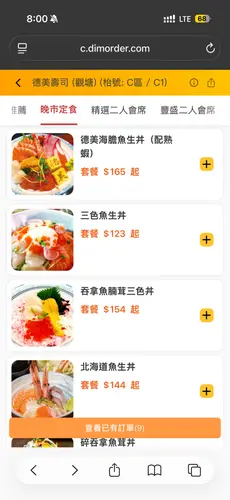 德美海胆鱼生丼 $178德美海胆鱼生丼好足料,有海胆、三文鱼、油甘鱼、玉子、帆立贝、蟹籽、飞鱼籽。饭粒略微温暖,突显鱼生的鲜甜感,配埋豉油,爽!