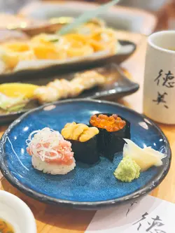 池鱼王薄切及鲭鱼酱油渍刺身(新鲜日本空运) 新鲜日本空运食材可系主打,包括池鱼王薄切,脂香不腻。另一款鲭鱼酱油渍刺身,口感滑顺,带有鱼油香气。
