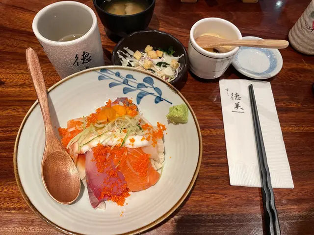德美海膽魚生丼 $178德美海膽魚生丼好足料,有海膽、三文魚、油甘魚、玉子、帆立貝、蟹籽、飛魚籽。飯粒略微溫暖,突顯魚生的鮮甜感,配埋豉油,爽!