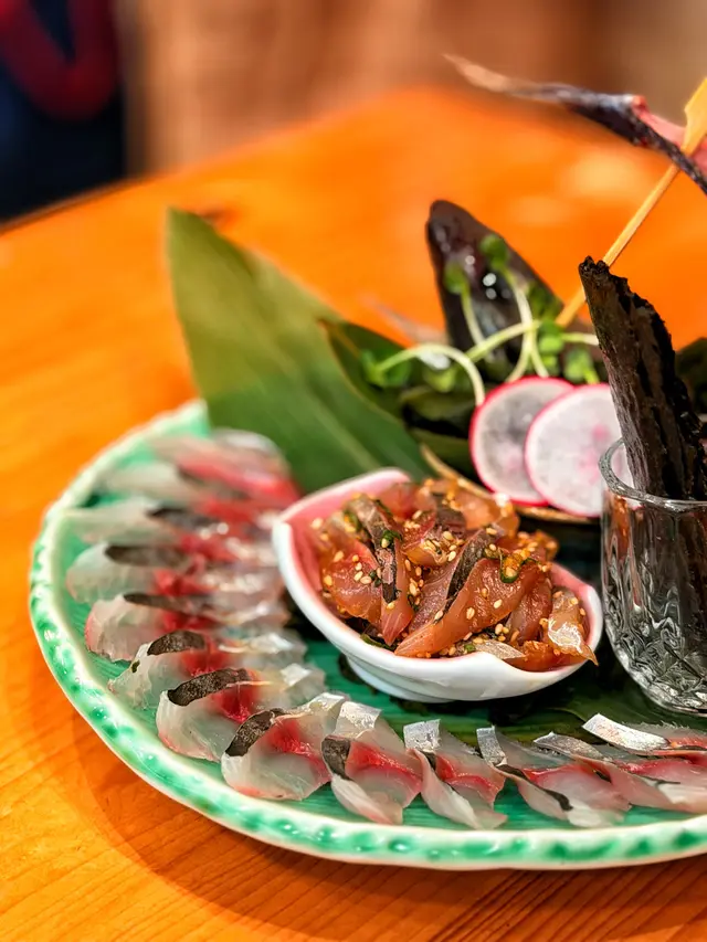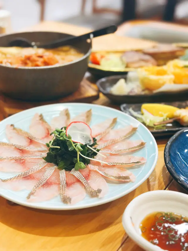 池魚王薄切及鯖魚醬油漬刺身(新鮮日本空運) 新鮮日本空運食材可係主打,包括池魚王薄切,脂香不膩。另一款鯖魚醬油漬刺身,口感滑順,帶有魚油香氣。
