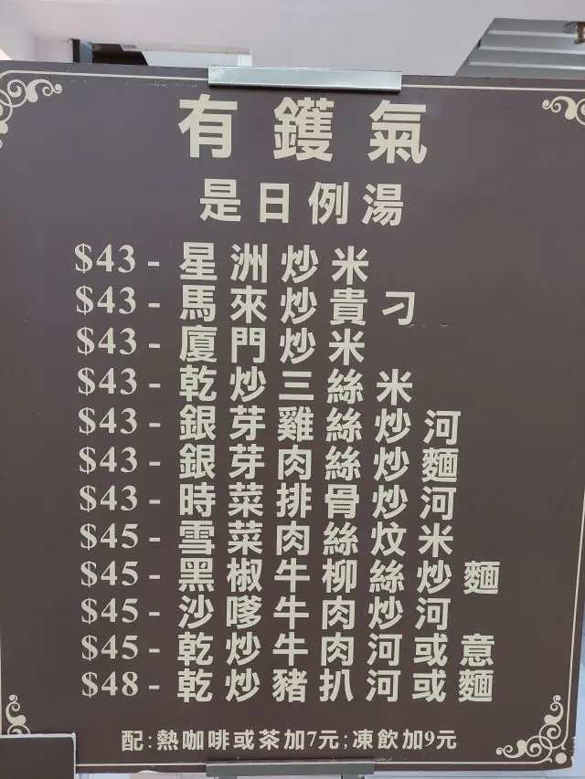 到上水買東西,又到晩餐時間,路過德興茶餐廳平靚正,即管試試。快餐店形式,門口買票付款,入內交單等、取食物,完全自助形式有鑊氣小炒,價錢由$43起,熱飲加$7,凍飲加$9點了:時菜排骨炒河($45)附送一碗例湯,加$9要了一杯凍檸茶排骨切成細細粒,肉質算軟腍,幾棵菜心有點點硬,河粉黏作一團,鑊氣不足,檸茶茶味很淡乾炒牛肉炒意粉($45)例湯有熱度,但味道淡而無味乾炒牛肉炒意粉,意粉質感過淋至發漲,貼近油麵粗幼意粉色澤偏淡,有少量芽菜,牛肉有八至十片,肉腍,但沒牛味,味道麻麻,份量足夠飽肚的。埋單: $97,價錢不貴,但食物味道普通,有點粗製濫造感覺,可以不試的一間茶餐廳查看更多