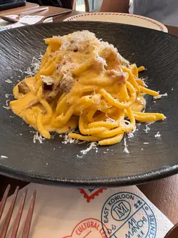 早上10:14到餐厅10:00开门, 店内只有一枱食客我们可随意选坐😊餐厅环境不错,楼底高,有空间感大幅玻璃窗,向外望,开扬舒服今天是星期天,全日只有单点星期六、日有全日早餐供应我们点了全日早餐(有太阳蛋、烟肉、大啡菇、茄汁豆、沙律菜、牛油果和包)$138卡邦尼自家制意大利面$138酱油花雕红虾意大利面$178以上全不包饮品埋单要另加一,合共$499单据上印有”memories on a plate, delivery with love “餐厅的服务走高傲路线,侍应以酷样迎客,以最少的说话及最少的面部表情来应对客人,当中或许隐藏著深深的热情和爱,但对于一般客人来说都只识睇表面,真的难以感受到餐厅是欢迎客人来用膳。只可说,侍应系有主动来加水的,埋单时亦有讲句thank you。食物方面,全日早餐属正常系,未见特别之处。点了2款意大利面,餐厅称是手工意粉,一见手工意粉,自然地便接受用较高价钱享用手工制品,那又自然地对手工意粉的质素有所期待。谁人都能将鸡蛋和面粉混和制手工意粉,但质素仍有高低之分,取决于用料比例、搓揉力度和手法等。这餐厅的手工意粉未有令我有赞叹之想,亦不是我喜欢的款式。2款意粉的酱汁浓稠度可以,意粉亦挂汁,调味上不错。卡邦尼用的烟肉食到咸咸香香,几好食,但这卡邦尼意粉不是我们平时食开的味道,它有明显的黑椒味。酱油花雕红虾在味道上做到酱油和花雕的平衡,几好!说实话,餐厅几好坐,但食物定价偏贵,星期天又没有早餐set。系九龙湾淘大和德福两边都有咁多食肆,食客有大把选择,呢间餐厅如何突围而出?🧐…查看更多