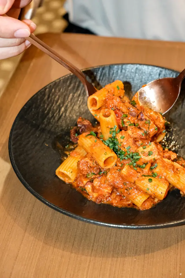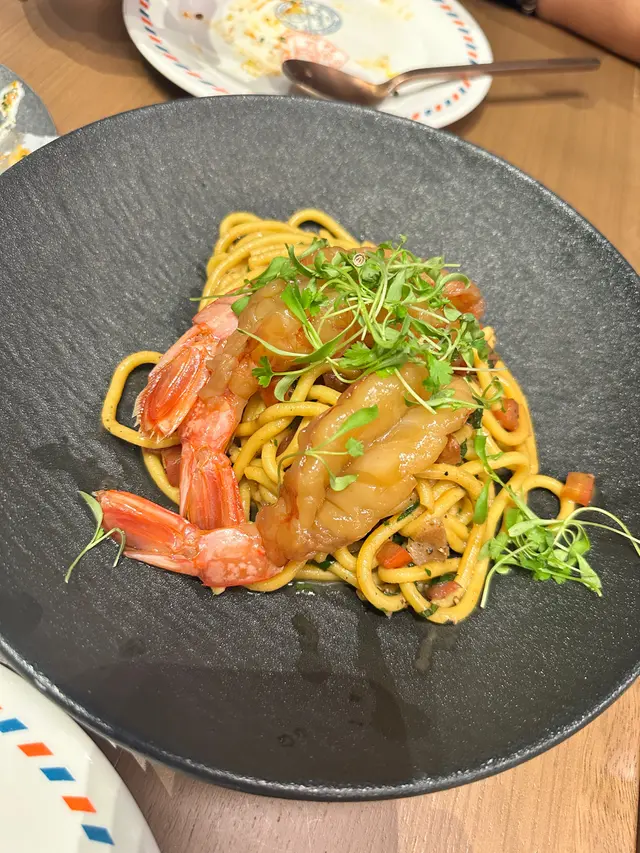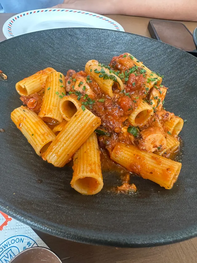 ‼️ 前排好𝐡𝐢𝐭的樓底好高但等上餐耐到死👎🏻👎🏻👎🏻‼️·①[ 花雕醬油漬紅蝦(刺身級)手工意大利麵 //XO醬意大利辣肉醬八爪魚短通粉 // 𝐌𝐚𝐫𝐠𝐡𝐞𝐫𝐢𝐭𝐚 𝐬𝐭𝐲𝐥𝐞 𝐬𝐨𝐮𝐫𝐝𝐨𝐮𝐠𝐡 𝐛𝐫𝐞𝐚𝐝 ]| 老實說是有點失望的(ꈨຶ˙̫̮ꈨຶ)餐點是逐個逐個上,每個大約等25-30分鐘…而且意粉份量也偏少。「 花雕醬油漬紅蝦(刺身級)手工意大利麵 」 花雕酒真係好出,紅蝦滑的,不過麻麻地酒味太重的我就感覺麻麻🥴「 XO醬意大利辣肉醬八爪魚短通粉 」 就好食啲嘅,起碼惹味啲,但都少𝐨𝐯𝐞𝐫𝐫𝐚𝐭𝐞𝐝 「 𝐌𝐚𝐫𝐠𝐡𝐞𝐫𝐢𝐭𝐚 𝐬𝐭𝐲𝐥𝐞 𝐬𝐨𝐮𝐫𝐝𝐨𝐮𝐠𝐡 𝐛𝐫𝐞𝐚𝐝 」 本身以為會好硬(因為𝐬𝐨𝐮𝐫𝐝𝐨𝐮𝐠𝐡)點知都不錯。|𓋪4/10•心心念念 (九龍灣)九龍灣牛頭角道60號東九文化中心1樓…查看更多