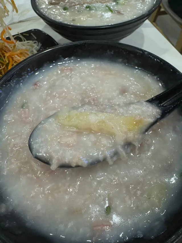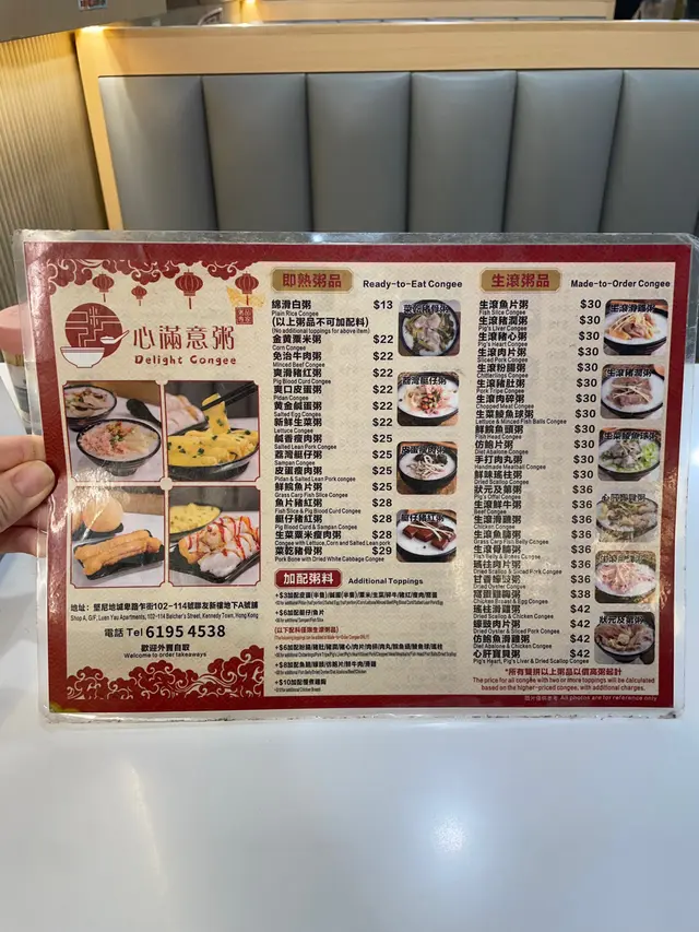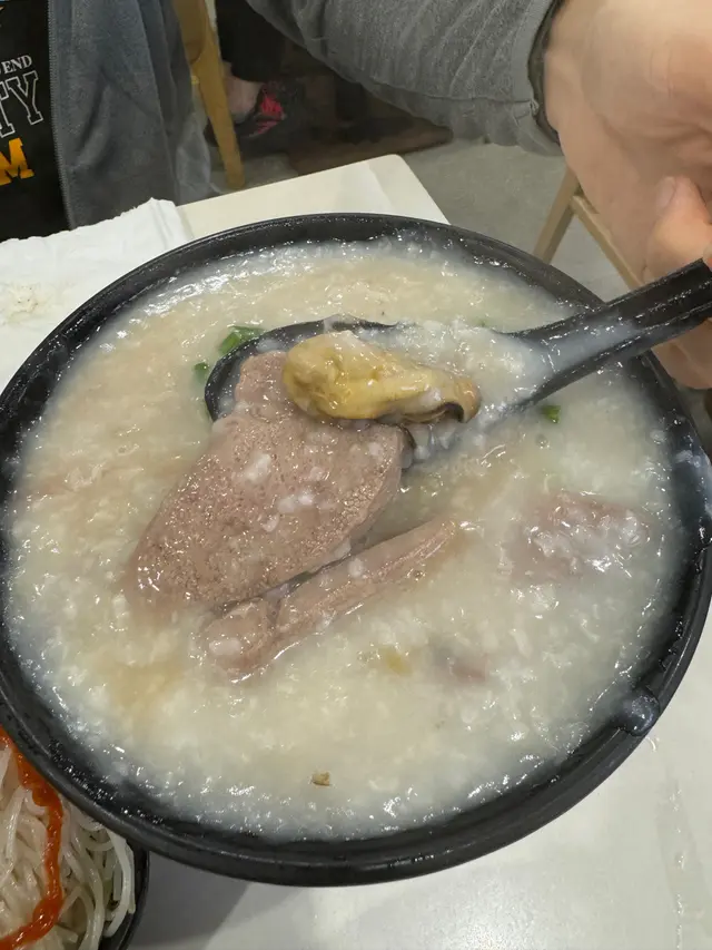 餐廳:心滿意粥地點:西環堅尼地城菜式:粥店餐牌:即熱粥品、生滾粥品、腸粉、油器、特色小食、飲品,都有生滾三餸湯飯。蠔豉肉片粥 $42生滾粥大大碗,粥煮得好綿,係專業粥鋪應有水準,正!而且粥底已經夠鹹香。三隻蠔豉好有蠔味,餸粥一流。大大塊肉片係超彈牙,份量有好多塊。粥面加上花生粒同蔥花加添味道口感。加鮮牛肉 $8鮮牛肉份量至少有三大塊,夠厚切有口感,牛味都唔錯。加滑雞 $8連皮連骨滑雞有四件,雞有雞味。回味炸兩 $18炸兩一碟三大條,超大份。滑溜腸粉包住少脆油炸鬼,已經加上豉油,可以自己再加枱上面甜醬等。食完飽到一個點。美味鮮蝦腸 $23美味鮮蝦腸一客三大條,每條切開兩半方便食用。腸粉滑溜,每條有兩隻爽脆大蝦,如果加埋韭黃就完美啦。豉油甜甜地,夠嗮調味。叉燒腸粉 $21叉燒腸粉都係一客三大條,每條切開多段,叉燒碎份量都唔少。蛋黃鹹肉粽 $23蛋黃鹹肉粽大大隻,熱辣辣上枱,果然足料,有綠豆,蛋黃同肥肉。跟有豉油比你自己加。雪碧,無糖可樂 各$7汽水夠凍。今餐食物都唔錯,食完感覺好健康,唔口渴。…查看更多