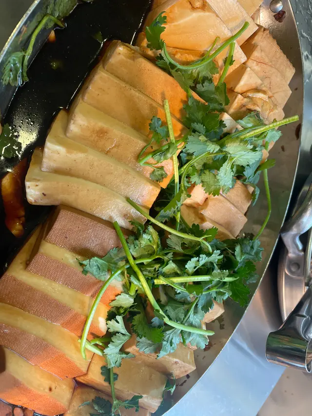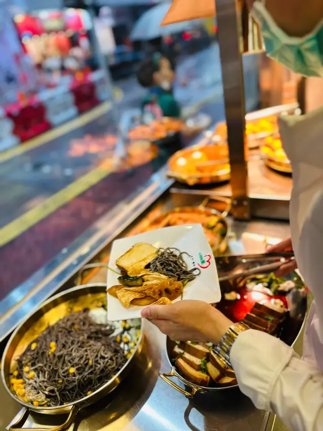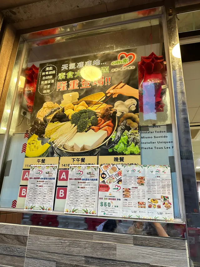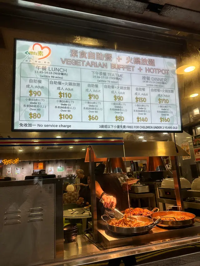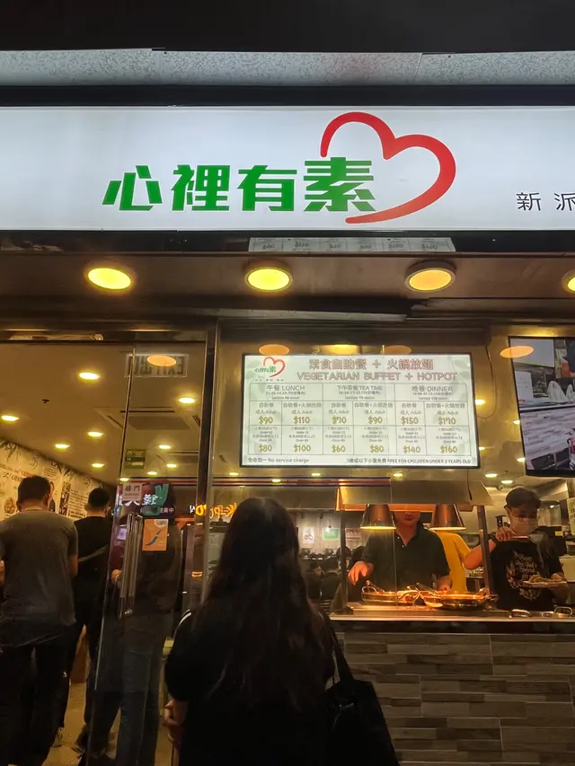 天氣凍凍地,好自然會想起火鍋。但,食素的人士,在香港要找一間合心意,也就是素食的火鍋店,實在是不容易。農曆新年期間,在網上看到了這一間《心裡有素》的宣傳,說有自助素食火鍋。我同太太就選了一個能交低小孩,可倆口子出街的星期六來試新店。可是,執筆時,小店已經頂不住租金的壓力,連後來的白武士都幫唔到幾耐,最終結業了。《心裡有素》其實是一間很普通的素食自助餐餐廳。那天來到,店員先是推介我們吃下午茶時段的素食自助餐。而火鍋,卻是自助餐價錢再 top up 上去的,所以,我們來到,就可以一口食食晒自助餐同非自助,但是任點的火鍋。先說自助餐的東東,其實可以說是沒什麼可以驚喜。因為食物的選擇,很大眾化。當中,當然有人見人愛,但有點點飽肚的素食炸點。簡單的小菜類食品,看起來似是一些大家去到佛堂參佛,佛堂內眾姨姨幣心煮出來給信眾們午、晚餐的食物出品。茶葉蛋、蒸水蛋及炒菜,,是不突出的食品。但以平平地,能令周邊素友兩餐溫飽的話,這種出品,算是 OK 既。火鍋盤未來到,我同太太就先食自助餐的東東,先把肚填好。大家都是簡單地吃幾個炸點,配以炒麵。若不是點了火鍋,這一個自助餐中,我們基本上只會吃炒麵。因為,也可以說是奈何,炒麵是眾自助餐點中,最好食的一樣東東。火鍋來了,我們選的是沙爹湯底。這沙爹湯底,看得出是自家製的。因為散發出來的香氣,有非常濃的花生香,再有的,就是芹菜的香味。成個湯底就是以芹菜同自家製沙茶醬來撐起,令我們吃好之後,不加點蔬菜了,直接喝上兩、三碗火鍋湯更開心。火鍋也是自助的,但更貼切的形容,是放題。我們在火鍋紙上剔剔剔,主要都是剔一些蔬菜及菇類。出來,就是一大盤的菜,很是壯觀的。店姨姨說,食完可以再添的,但當我們看見這一個份量,心中已經說,一盤就夠了。沙爹湯底,好配合我們所選的蔬菜及菇類。當中,油豆腐 (也就是豆腐卜),把沙爹湯盡吸在內,味道香甜得無比。食晒所有東西之後,沙爹味仍殘留在口腔內,很是好。之後,店姨姨說仲有甜品同水果。蛋糕同紅棗糕都好好味道。尤其是紅棗糕,是純紅棗的甜味,若不是飽,我們會多吃幾件。最後說的,是飲品。好絃種飲品的吸引,都食健康。多吃了炸點,多吃了火鍋料,熱氣的話,都健康解火。當中的新會十五年老陳皮茶,是店姨姨極力推介的,不甜,但飲後立即感生津止渴。另外的鮮菠蘿蜜糖特飲、羅漢果紅棗茶同黑桑葚山楂茶,都好好。單以素食自助餐來評,就真係普通到冇得再普通了。而火鍋,雖然都是簡單食材,但所有蔬菜都夠新鮮,湯底又夠正,值得給回一個開心的讚讚。…查看更多