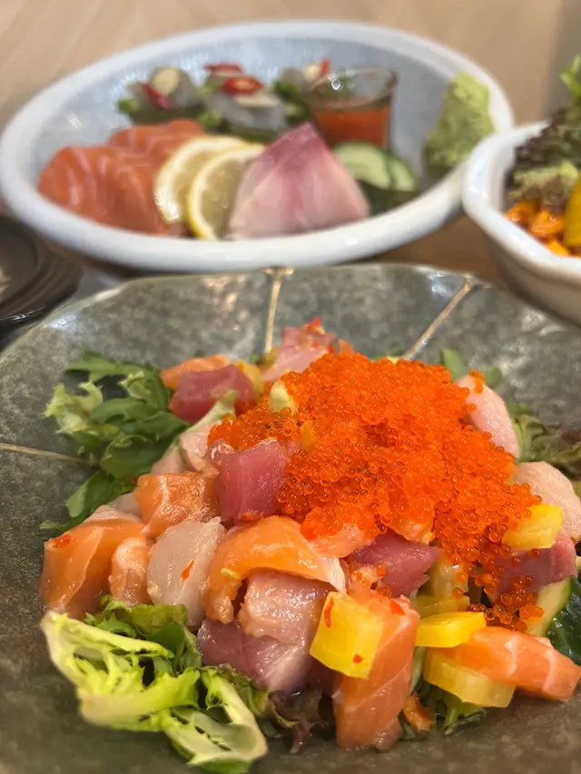 感谢好友带路今天和朋友在铜锣湾玩偶然发现这个泰日融合小店离时代广场只有几步路咧泰日料理真的很少见厨师会把🇹🇭🇯🇵泰国料理和日本料理的精髓融合起来为了创新口味研发fusion菜式可谓是费心了迫不及待知道它的味道了一起来看看吧🥘泰日煲仔鱼翅好香好浓应该是煲仔翅放大版两个人都喝不完在吃刺身前来点热的垫垫肚子最好不过啦🥗泰式汁拌杂锦鱼生沙拉厨师你也太聪明了泰式汁拌鱼生是真的很开胃与其他沙拉酱料不同泰式汁酸酸辣辣搭配上蔬菜我能吃一大碗🍣泰三色刺身这个里面有常见的三文鱼油甘和生虾三文鱼和油甘都很新鲜吃得出来老板是严格把关的but我要强力推荐这个生虾与之前吃的生腌不同这个生虾浸在调料里配上蒜子辣椒一口下去酸酸辣辣太好吃啦🚢香辣肉碎潜艇好可爱的名字大家猜到是什么了吗泰国的香辣肉碎遇上寿司米饭一口魂穿泰国又时不时跳到日本去这个搭配太有创意啦🍗旋风蛋包鸡腿丼好看又好吃鸡腿软软的配上酱料特别下饭🥭芒果糯米寿司可可爱爱寿司上面不是鱼生而是芒果切片淋上香浓椰奶超级解腻❤️ 店鋪:泰友迎x心鰭丼🏠 地址:灣仔寶靈頓道15號…查看更多