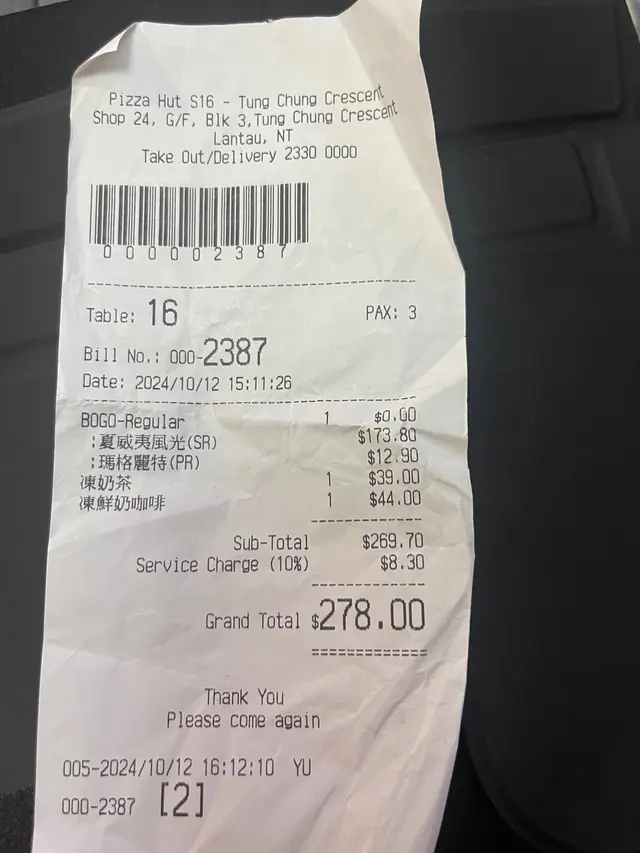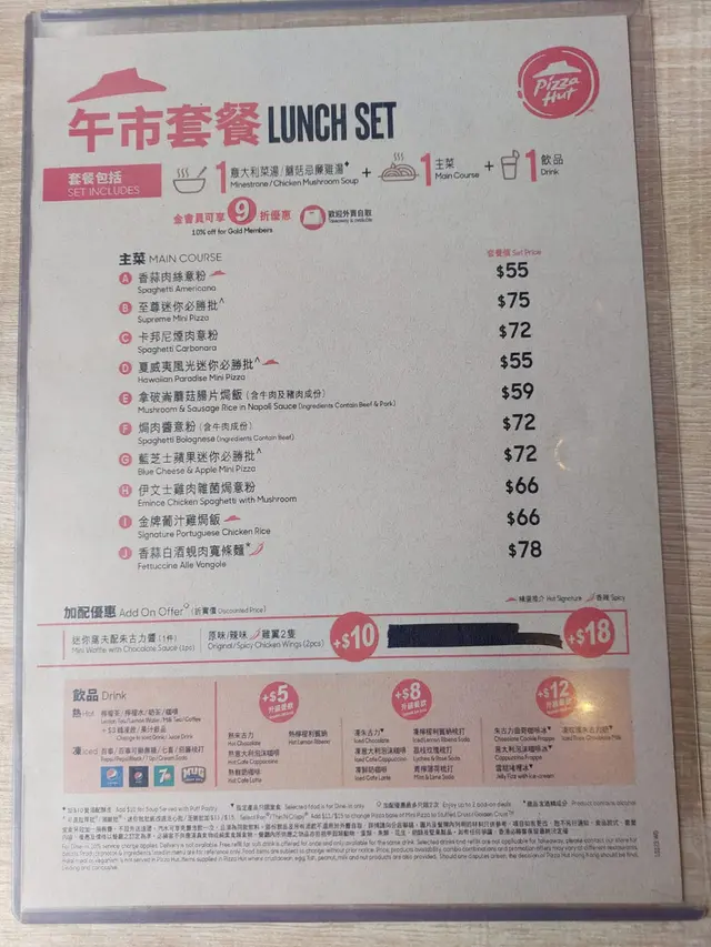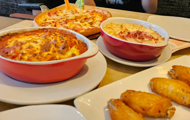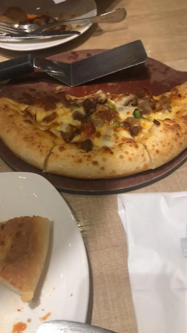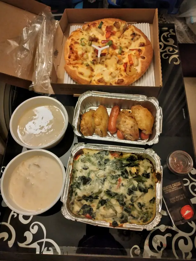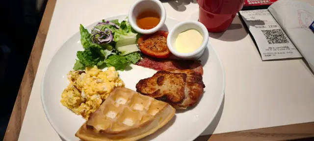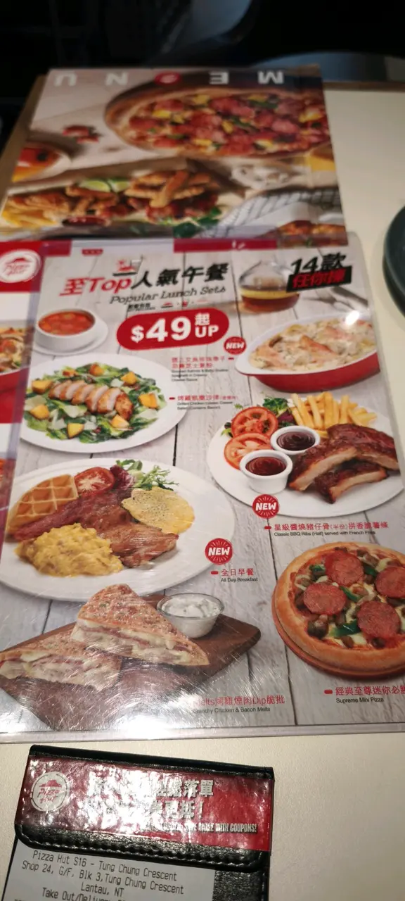 東涌pizza hut 最近新裝修完成,而且更新了午餐餐牌,有我最愛的全日早餐,所以今天中午便來試吃一下。中午時段有午餐餐牌,最便宜只需49元起,不過全日早餐價錢不便宜,需要$89,我另加$10升級酥皮忌廉湯。可惜的是,全日早餐的份量十分少,只有一塊十分細塊的雞排,沒有味道的炒蛋,乾巴巴的窩夫,細小的煙肉以及不飽肚的蔬菜,除了雞排的味道比較好之外,其他都很難吃,完全不值$89的質素。至於酥皮湯方面,酥皮的味道挺好的,外層香脆可口,可惜內裡的忌廉湯完全是罐頭湯的質素,甚至味道比罐頭湯更差。價錢方面,全日早餐$89,酥皮忌廉湯$10,餐廳有加一服務費,最後總共是$108.9。總結來說,全日早餐一點也不划算,味道又差,大家千萬不要點,試吃其他午餐算了。…查看更多