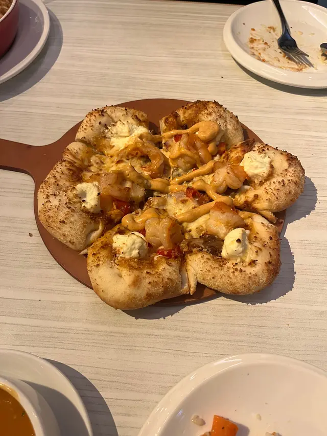 今晚同屋企人食團年飯,但係費事逼人,所以就近近地落樓下Pizza Hut🍕,好耐冇食但係估唔到有驚喜❤️🌟花花批二人套餐|$392|8.5/10$400都唔使就有Pizza,湯,沙律,飯,兩個小食野飲同雪糕🍦‼️個炸魚仔好脆好好味。勁多野食食到好飽好滿足。最有驚喜嘅係今期個Pizza,有啲辣辣地嘅醬汁配海鮮🦐好惹味,嗰批邊係芝心批邊另外仲有好多cream cheease👍好好味,啱晒芝士🧀查看更多