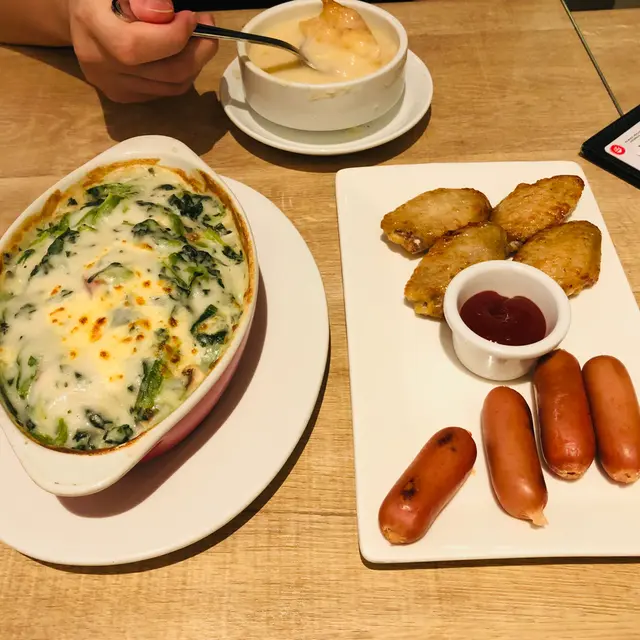 睇menu見到有學生餐好抵食$38up就同朋友坐低lunch我地2大2小叫到2個學生餐,大人就叫2個午餐Pizza-夏威夷厚批,好鬆脆,餡料好足夠,味道岩岩好熱🔥辣辣咁食特別好食海鮮🦞闊條麵-海鮮材料好多,白汁味既闊條味偏左少少🤏咸雞肉蘑菇pizza-我地簡左芝心批,芝士好多,岩哂芝士控既我忌廉蘑菇湯-味道正常平日午時時段無咩人,坐位亦非常闊落環境⭐️⭐️⭐️⭐️⭐️味道⭐️⭐️⭐️⭐️服務⭐️⭐️⭐️⭐️⭐️價錢⭐️⭐️⭐️⭐️⭐️查看更多