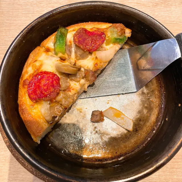 太耐冇食過Pizza Hut 堂食,堂食真係好食過外送超多,專登加叫左個錢海鮮芝脆批邊,成個Pizza 邊都加左咸咸地芝士碎,勁滿足。午市時段,人唔太多,環境算唔錯葡汁雞皇飯都唔錯,配埋鴦餐都算抵,跟餐有忌廉湯,充滿童年回憶。查看更多
