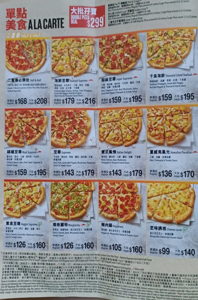 Pizza Hut有Pizza買一送一~~很優惠~~在愉景新城逛著~~就決定要買來跟家人一起吃~~🍕🍕員工說除了灰色點點的pizza不包括在此優惠~其他pizza都可買一送一啊~☺至尊大批 (厚批) [走牛肉粒] ($167) 茄醬的甜甜酸酸,恰好配搭上了辣肉腸的咸味再配上洋蔥、青椒、蘑菇、豬肉粒每一口都有豐富的餡料,味道層次豐富~~🤤咸咸香香,重口味者一定很喜歡~~🥰意式風情大批 (厚批) ($167)豬肉粒、雞肉、火腿的微微咸香配上菠蘿粒的酸甜和千島醬的甜味微微酸甜的口味,開胃得很😎小朋友都很喜歡~~💕在買一送一的優惠之下$167就有兩個大批了~~而且餡料份量跟平日正價完全一樣絕無因特價而減量划算得很~~💃💃💃P.S.在優惠完結前再去多吃一次才行~🤣🤣🤣查看更多