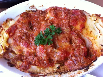 一个千层肉酱濶面:好好味,侧边啲薯蓉焗到啱啱开始实,好有口感
