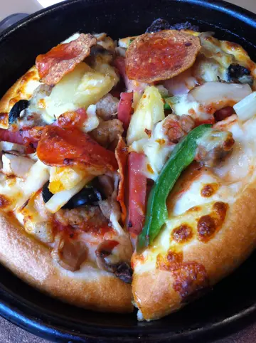 先嚟个汤:今日有忌廉鸡蓉和杂菜汤两款之后主菜我们叫了:一个超级至尊pizza:个厚批真系好厚,料都好足,迷你装啱啱好