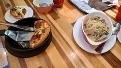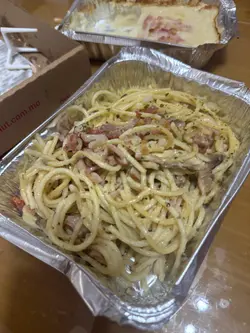 千島海鮮芝脆批,成個批都好似未焗好咁,睇個色都已經唔開胃,口感同食麵包冇分別,芝士腸仔麵包都好食過佢,卡邦尼意粉,乾噌噌,勁多黑椒喺上面,未食過有黑椒嘅卡邦尼意粉