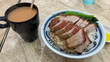 今日路过黎食下午茶,叫左个叉烧烧腩饭,4x 蚊,连野饮,都算抵哗,我第一次见到有舖头d 叉烧系咁样斩,点解系打直斩,咁样d 叉烧得劲少地方连住蜜汁外皮,不过外皮都冇蜜汁,一d 都唔反光仲有,可以见到d 叉烧又瘦又干又鞋,一d 肥都冇,仲话叉烧皇个烧腩就好食既,芥辣香而不辣