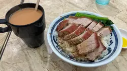 有日经过见到呢间忠哥叉烧王,想去食好耐。一入到去,未order已经有碗例汤饮。既然慕名而来梗系拣叉烧食啦。叫咗碗叉腩饭加腊肠,佢半肥瘦叉烧好香,烧腩仔好脆,腊肠好正,成个饭都好香。有惊喜。