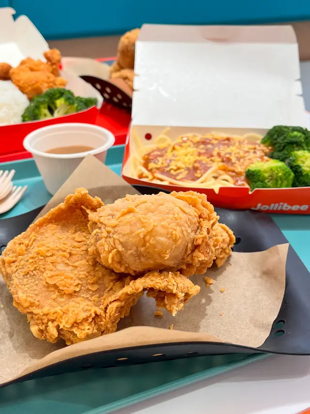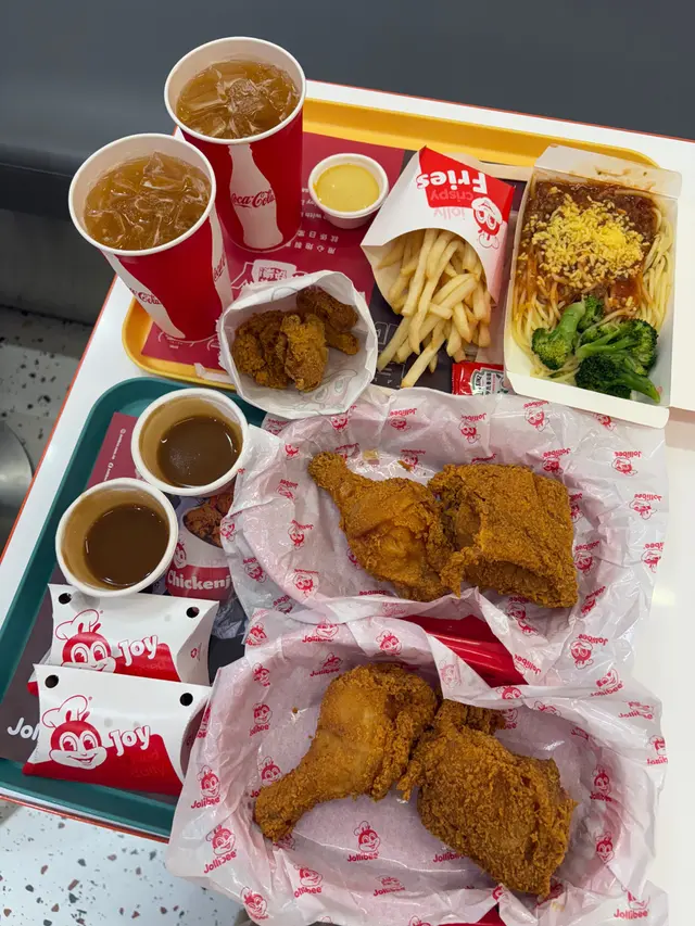 喺北角有啲嘢做,大概12點幾就去咗jolibee 食午餐,餐廳範圍唔大,枱枱之間嘅距離亦都很大,加上好多人,所以好難搵位,最後我哋搵到喺門口附近嘅位置,因為係落地玻璃,所以比較熱,餐廳有提供兒童高椅,亦都有廁所和廁所外的洗手設施。我哋叫咗兩個餐,一個係肉醬意粉配炸雞飲可樂,價錢係$42,肉醬意粉份量唔算少,炸雞都好Juice,本身配嗰隻醬都唔錯。另一個係兩件炸雞配薯條飲可樂,價錢係$40,今次炸雞一件係雞脾,另一件係類似雞胸,但係雞胸這塊比較少肉多骨,薯條正常。整體我覺得幾好味,因為啲雞有雞味,唔乾,好Juice。查看更多