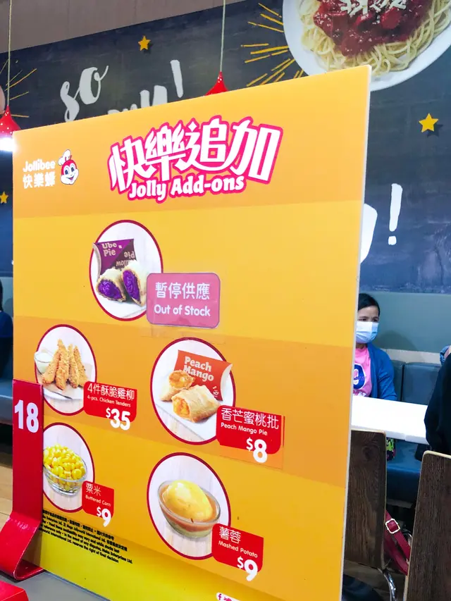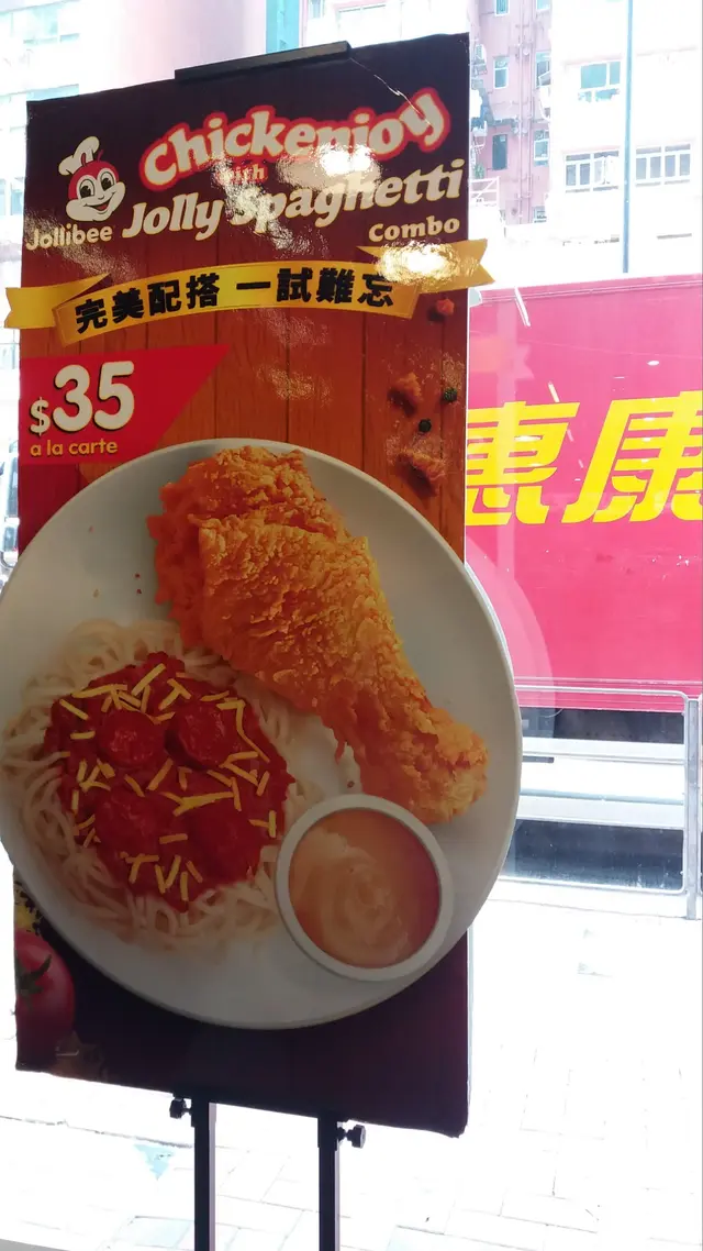 今次是我第一次光顧Jollibee 可能是廣告宣傳問題它一直給我的感覺都不算太吸引這樣 也只是菲庸的主要集中地不過那天剛在附近弄些銀行事情 就過來吃一下了店面很奇怪 有長斜和樓梯 搞不清是否給家長推嬰兒車還是鋪面設計的問題如果一不小心 很容易把食物倒翻老實說 它的炸雞不及KFC的好吃 相信這個也是分店沒有太多的主因而最特別它附上一個類似磨菇汁的醬汁 起初也不是太懂的要怎樣來吃原來是用來伴雞的 看見有些客人吃得津津有味至於意粉有喜出望外的感覺 儘管賣相不算很好 但味道卻十分好吃 茄汁夠味 有些切粒香腸 配搭起來很快被我吃光意粉比起炸雞好味我就是吃這個餐 但這價錢未包飲品這店最好的是 有檸檬茶 加2.5元 這一點要讚附上無相關的有招牌圖案的餐巾 哈哈總括來說 Jollibee 的好味程度未至於我會乘坐幾個電車站去吃但它是有它的忠實粉絲查看更多