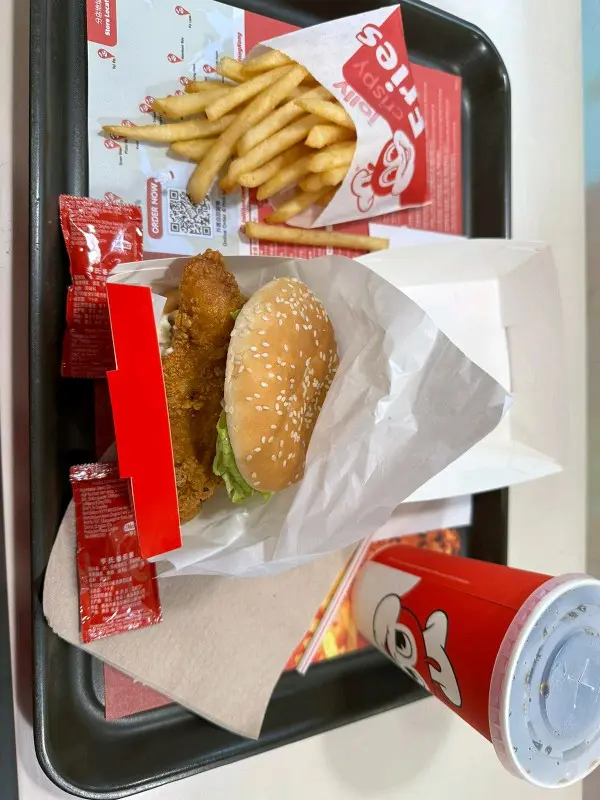 第一次光顧,因為係附近飲宴,又早到咗,見到有間Jollibee.就入去叫咗個樂脆雞堡套餐.樂脆雞堡套餐:有一塊炸雞件,薯條和汽水.雞件炸得外脆內軟,裏面嘅肉又嫩滑.味道唔會太濃,恰到好處.加埋兩塊包咬落非常鬆脆,好滿足呀!薯條絕對合格,每一條都炸到金黃色,雖然薯條係幼身的,但都有口感.畀m記好食得多,m記嘅薯條係軟身的,這家薯條又香又脆.好好食.冰凍可樂.透心涼.正呀.整體來說:食物質素不錯,下次一定會再來.查看更多