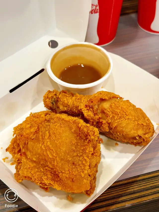 薯條絕對合格,條條都金黃色,又唔會炸到硬晒,份量方面就細啲啦,似M記細薯條,無多餘嘅鹽,味道啱啱好,一樣啦,鐘意嘅咪點吓茄汁。每份雞都新鮮熱辣,味道唔會太濃恰到好處,食落仲嫩口多汁,啲皮絕對無得輸,啖啖肉之餘,仲係卜卜脆,不過代價就會油膩啲喇!如果想要濃味啲,可以配埋佢哋嘅Gravy醬汁,一樣無得彈!每份雞都新鮮熱辣,味道唔會太濃恰到好處,食落仲嫩口多汁,啲皮絕對無得輸,啖啖肉之餘,仲係卜卜脆,不過代價就會油膩啲喇!如果想要濃味啲,可以配埋佢哋嘅Gravy醬汁,一樣無得彈!查看更多
