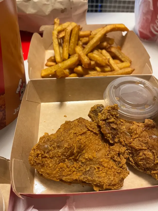 當日係假期黎既同朋友效遊完肚仔餓要覓食但係食飯黃金時間一定要等位等到傻把心一橫 買個外賣炸雞回家吃第一次接觸Jollibee係係一個婚宴上面由於仲有段時間都未入席有位朋友係開宴前自己買左一個餐係酒店食咁我就第一次食一食之後就再冇食 KFC 了Jollibee 的炸雞即是係唔同分店 唔同時間水準都可以保持到咁高質次次去食 炸雞都可以保持到熱度唔會凍冰冰 因為炸野一凍左就會唔好食炸粉個皮好簿好脆 真係好好食一咬開炸雞 肉汁會爆出黎如果新鮮出爐 記得小心會燙傷個口肉質係非常滑同多汁既連鎖炸雞店 真係冇一間夠佢好食!冇得頂!相比KFC 大部份時間D雞又凍又鞋一試之後立即轉會經過都心癮起呀!蕃薯條本人十分喜愛蕃薯條有得叫都一定升級蕃薯條脆身有淡淡甜味好食😋查看更多