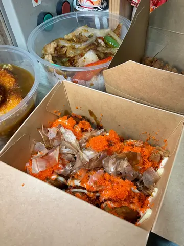 朋友话佢屋企附近有间外卖店性价比好高,系佢饭堂尼!放假去佢屋企玩,佢就话要带我去试下!蒲烧鳗鱼丼鳗鱼有好多块,每块都有浓郁酱料香味,配埋饭一齐食岩岩好,饭量都好多,好饱肚。口感层次丰富,令人满足。价钱唔贵,都几抵食。日式叉烧拉面外卖会分汤,即使拎到反屋企都唔会浸到淋晒。拉面都几弹牙,汤底几浓郁但又唔会太咸,叉烧份量都几多有四块,仲有半只蛋做配料。紫菜粟米唐扬炸鸡丼唐扬鸡外脆内软,亦都好juicy。炸衣好薄,唔会食到成口炸粉。紫菜好香而粟米亦都好香甜,伴埋白饭一齐食口感层次都好丰富。飞鱼子玉子烧金黄色既玉子烧同鲜橙红色既飞鱼籽形成强烈颜色对比,非常吸引。玉子烧好厚切,口感绵密嫩滑,亦充满蛋香味,飞鱼籽脆感增添左口感层次。紫芋甘栗薯饼薯饼即叫即炸,热辣辣,口感外脆内软,紫芋同甘栗都非常香甜可口。一咬开金黄色既外皮就见到入面紫色既内馅,颜色对比强烈,好吸引。迷你咖喱汉堡扒餐依个餐除左有咖哩汉堡扒饭,仲有一个细乌冬。汉堡扒上面铺满浓浓咖哩酱汁,咖哩同汉堡扒真系非常之夹,送饭食一流。虽然只系迷你size,但女仔食都已经够晒饱。汉堡扒好厚切,亦带有少少洋葱香味。乌冬口感弹牙,沾上荞麦面汁食,味道都非常之夹又清爽。味香牛肉烧丼牛肉份量都几多,口感几嫩滑,几有牛味,令一忌唔住食完一啖又一啖!饭量亦同样好多,食完一定够饱!…查看更多