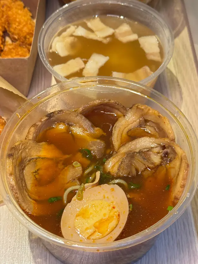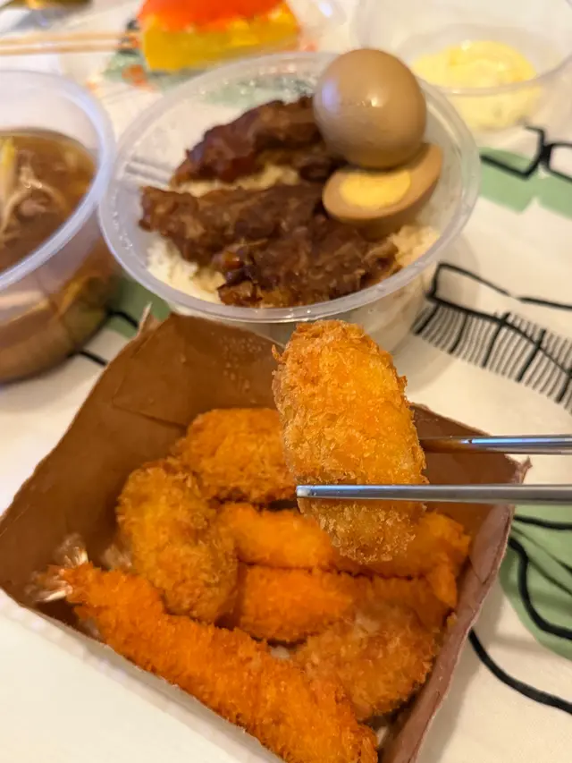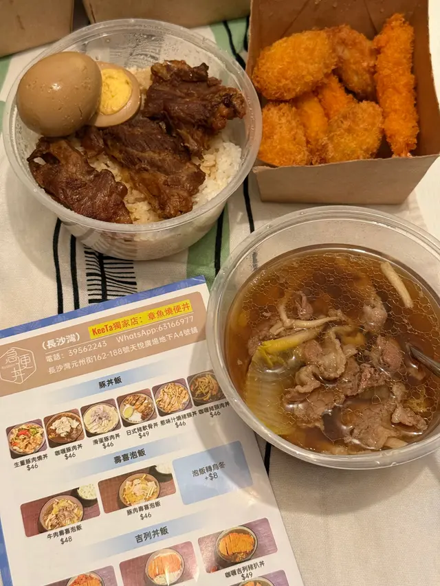 朋友話佢屋企附近有間外賣店性價比好高,係佢飯堂尼!放假去佢屋企玩,佢就話要帶我去試下!蒲燒鰻魚丼鰻魚有好多塊,每塊都有濃郁醬料香味,配埋飯一齊食岩岩好,飯量都好多,好飽肚。口感層次豐富,令人滿足。價錢唔貴,都幾抵食。日式叉燒拉麵外賣會分湯,即使拎到反屋企都唔會浸到淋晒。拉麵都幾彈牙,湯底幾濃郁但又唔會太咸,叉燒份量都幾多有四塊,仲有半隻蛋做配料。紫菜粟米唐揚炸雞丼唐揚雞外脆內軟,亦都好juicy。炸衣好薄,唔會食到成口炸粉。紫菜好香而粟米亦都好香甜,伴埋白飯一齊食口感層次都好豐富。飛魚子玉子燒金黃色既玉子燒同鮮橙紅色既飛魚籽形成強烈顏色對比,非常吸引。玉子燒好厚切,口感綿密嫩滑,亦充滿蛋香味,飛魚籽脆感增添左口感層次。紫芋甘栗薯餅薯餅即叫即炸,熱辣辣,口感外脆內軟,紫芋同甘栗都非常香甜可口。一咬開金黃色既外皮就見到入面紫色既內餡,顏色對比強烈,好吸引。迷你咖喱漢堡扒餐依個餐除左有咖哩漢堡扒飯,仲有一個細烏冬。漢堡扒上面鋪滿濃濃咖哩醬汁,咖哩同漢堡扒真係非常之夾,送飯食一流。雖然只係迷你size,但女仔食都已經夠晒飽。漢堡扒好厚切,亦帶有少少洋蔥香味。烏冬口感彈牙,沾上蕎麥面汁食,味道都非常之夾又清爽。味香牛肉燒丼牛肉份量都幾多,口感幾嫩滑,幾有牛味,令一忌唔住食完一啖又一啖!飯量亦同樣好多,食完一定夠飽!…查看更多