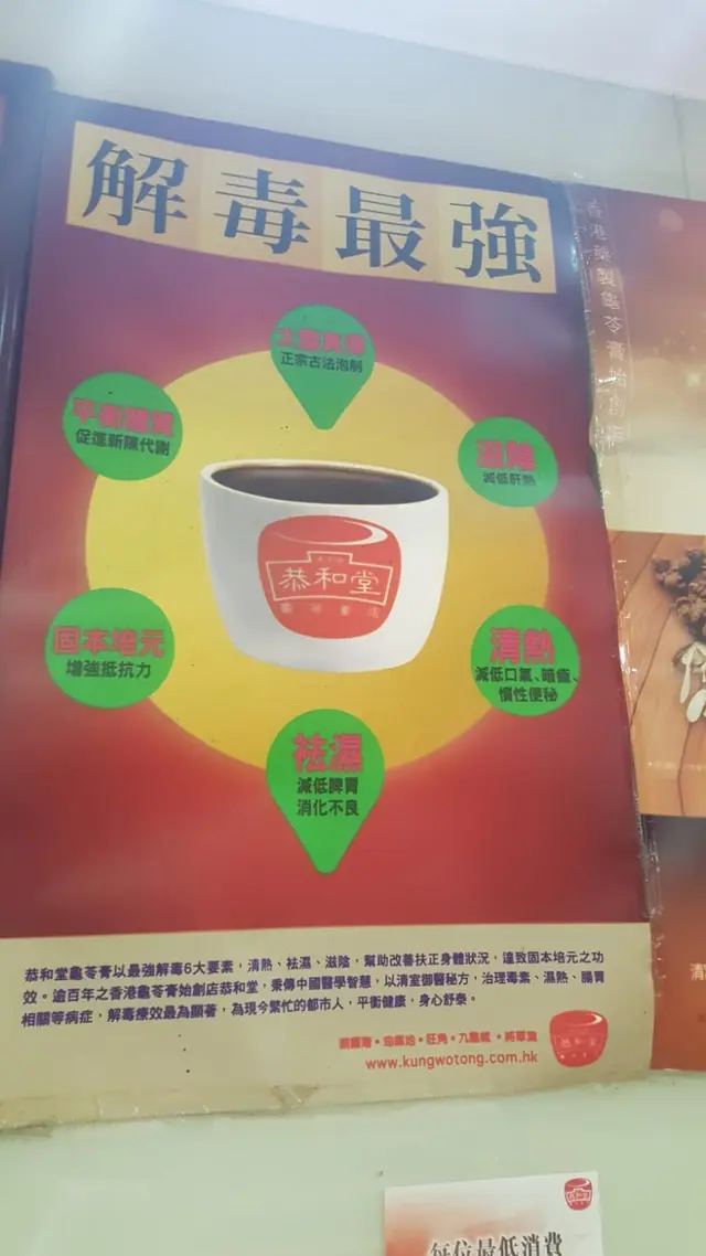 香港夏季長,氣候濕熱,容易上火、生暗瘡、中暑毒等,中藥的食療法在香港大為流行。龜苓膏源於宮廷秘方,流傳於民間,盛行於香港。香港人從小就是吃龜苓膏長大的,一有上火、生暗瘡的症狀,想到的就是吃龜苓膏去清熱解毒。除了清熱解毒的功效,還有滋陰潤燥、美顏護膚等效果。所以我們習慣了吃龜苓膏、喝涼茶,解決小問題不用去看中醫。說到做龜苓膏的專家,始創於1904年的恭和堂是香港人耳熟能詳的老牌子,用料考究值得信賴。她還有川貝枇杷膏治咳嗽、無花果靈芝膏潤肺養生、加強免疫力、安神益氣等;涼茶系列有龜苓茶、廿四味、五花茶等,全部都是應對香港的氣候問題引起的亞健康問題。現推出的新品:"益生元龜苓蜜蜜飲"把龜苓膏做成小小包的,方便帶出街、隨時隨地都可以飲用。…查看更多