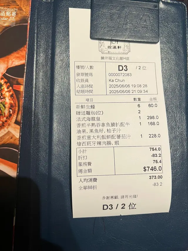 上星期六為咗慶祝女朋友加人工🥳,我哋揀咗去荔枝角嘅悅滿軒食餐好嘅。餐廳裝修幾舒服,燈光柔和,坐得幾自在😌,唔會太嘈雜。我哋嗰晚叫咗嘅菜式有:* 澳洲藍青口配雲呢拿忌廉汁・薯條* 海鮮香蒜辣椒白酒貓耳朵粉* 烤焗法國脆皮黃油雞配牛肝菌珍珠麵・西班牙紅椒忌廉汁* 菠蘿雪葩配沙巴翁🌸🌸🌸🌸 澳洲藍青口配雲呢拿忌廉汁・薯條啲青口幾新鮮,size都算大隻,肉質食落都OK飽滿。個雲呢拿忌廉汁配搭幾得意,淡淡嘅雲呢拿香氣滲喺忌廉汁入面,味道幾特別,又唔會太heavy。旁邊嘅薯條炸得香脆🍟,點埋個汁一齊食都幾夾。🌸🌸🌸 海鮮香蒜辣椒白酒貓耳朵粉呢個貓耳朵粉煮得幾啱啱好,口感煙韌得嚟又有啲嚼口。海鮮料都算足,有蝦有蜆咁。味道方面,蒜香同辣椒嘅微辣感覺都到位🌶️,不過白酒嘅香味可以再明顯少少🤏。整體嚟講算係不過不失嘅一道意粉。🌸🌸🌸🌸 烤焗法國脆皮黃油雞配牛肝菌珍珠麵・西班牙紅椒忌廉汁個黃油雞個皮真係烤得幾脆口啵👍,切落去都有聲㗎。雞肉保持到嫩滑,唔會鞋口。配菜嘅牛肝菌珍珠麵幾香菇菌味🍄,口感一粒粒幾有趣。個西班牙紅椒忌廉汁味道幾濃郁,帶少少甜,用嚟配雞肉食唔錯。🌸🌸🌸🌸 菠蘿雪葩配沙巴翁食完主菜之後,呢個菠蘿雪葩真係好清新🍍!酸酸甜甜咁,即刻解咗膩感。個沙巴翁醬打得幾滑溜,有啲蛋酒香,撈埋雪葩一齊食,口感層次幾豐富😋,做結尾啱啱好。食物質素整體都唔錯,份量亦都算合理。雖然唔係樣樣都話超級突出,但成個用餐體驗都令人滿意👍。女朋友收到份加薪禮物🎁,見佢食得開心就最緊要啦!算係一個幾唔錯嘅慶祝晚餐🥂。…查看更多