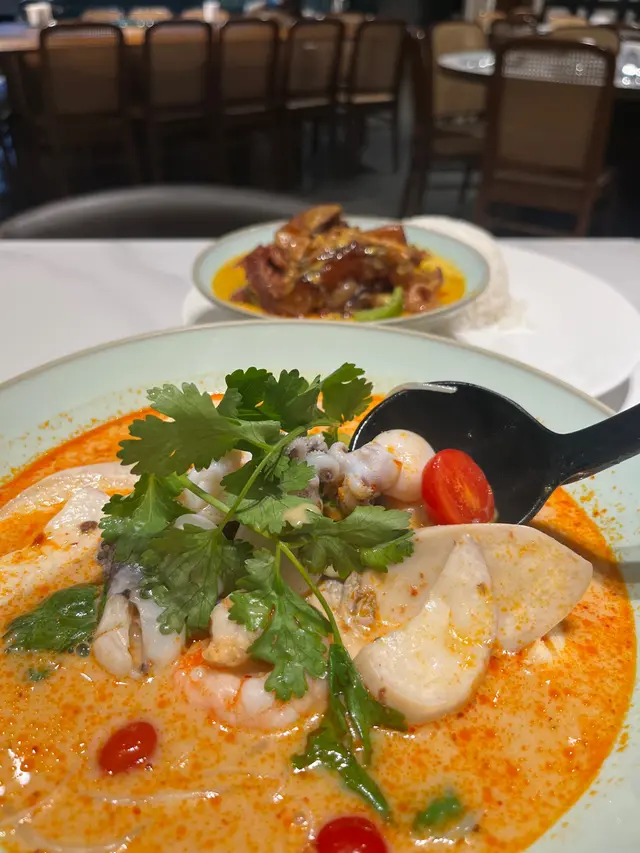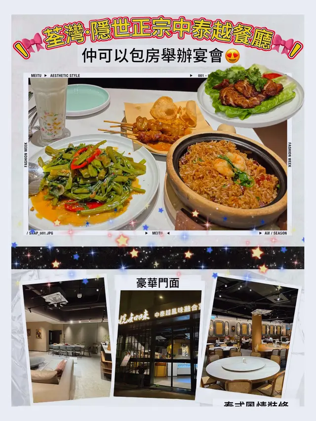 🎀荃灣。隱世正宗中泰越餐廳 仲可以包房舉辦宴會😍🎀🪄店名* #悅知味🔮地址* 荃灣大窩口國瑞路168號縉庭山3座地舖🔮🗾分店地區🗾 沒有分店💰價錢$468 已加一 (2人)➖➖➖➖➖➖➖➖➖➖➖➖➖想睇更多同區推介👉地區搜尋🔍🗾#pickyme_荃灣剩系食呢一類👉食物類型搜尋🔍🍜#pickyme_泰國菜➖➖➖➖➖➖➖➖➖➖➖➖➖🎵餐廳環境🎵位於半山高級住宅區,空間寬敞分兩層。一樓以泰式風情為主調,復古燈飾與特色柱雕營造異國氛圍,多設大桌適合家庭聚餐。二樓全層包廂分三檔消費,最低$888起,豪華房配備獨立麻雀枱及卡拉OK,最大包廂可容20人,宴會套餐選擇豐富,私密性與娛樂性兼備。 🍽️食物質素🍽️開業年餘已成街坊熱捧食府,泰籍團隊主理廚房,主打地道中泰越融合菜。菜單選擇多元,分量十足且價錢合理,招牌菜熱辣上桌鑊氣足,海鮮食材新鮮,上菜效率高。整體性價比突出,適合親友聚會或節慶宴客。 👀評分💖💖💖💖💖🪄泰式香芋臘味蝦仁砂煲飯 $138將中式臘味飯注入泰式靈魂,驚喜度滿分!砂煲焗出金黃脆口的飯焦,臘味選材瘦而不膩,搭配粉糯芋頭與大粒彈牙蝦仁,香氣層次分明。尤其煲底焦香與臘味油脂交融,簡直邪惡到停不了口👀評分💖💖💖💖💖🪄炭燒豬頸肉$118人氣之選!厚切豬頸肉炭烤火候精準,外層微焦帶脆,內裡肉汁飽滿,濃郁炭香與豬肉甘甜。蘸上酸辣醬更添風味,份量幾多,性價比高👀評分💖💖💖💖💖🪄馬拉盞炒通菜$88鑊氣十足的地道小炒,通菜嫩綠爽脆,馬拉盞鹹香中帶微辣,整體調味一流👀評分💖💖💖💖🪄沙嗲串燒 (雞牛豬各一) $48沙嗲醬濃郁帶花生香氣 一次可以試三款肉 包括雞肉、牛肉及豬肉,建議趁熱食用。不到$50三串的價格而言,價錢便宜👀評分💖💖💖💖💖🪄大菜糕(隨餐附送)驚喜甜品!本次嘗到蛋花椰汁雙層版本,上層大菜糕清爽彈牙,底層椰香濃郁。店員透露不定期更換口味(如芒果、蝶豆花)👀評分💖💖💖💖💖🪄三色冰$33地道泰式飲品改良版,彩色啫喱珠口感Q彈,椰奶甜度適中,冰涼解膩,與濃味菜式絕配(5個💖為最高)✴️✴️✴️✴️✴️✴️✴️✴️✴️✴️✴️✴️✴️⚜️整體評級⚜️🎈味道評分*😋😋😋😋😋🎈環境質素*🎇🎇🎇🎇🎇🎈抵食程度*💰💰💰💰💰🎈服務態度*💌💌💌💌💌…查看更多