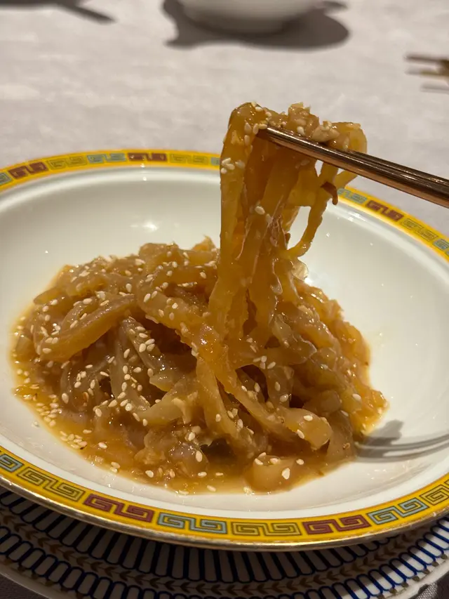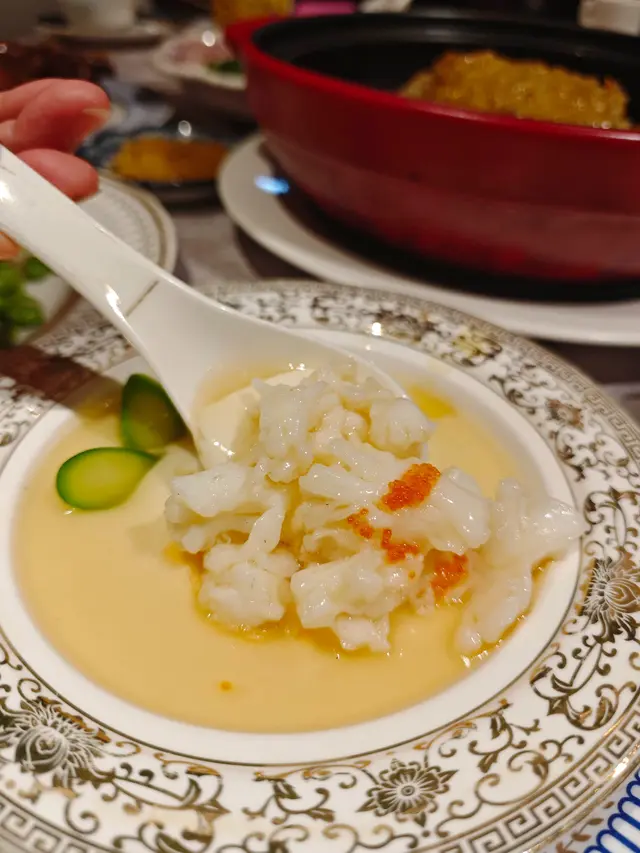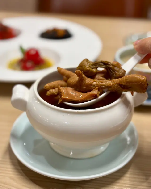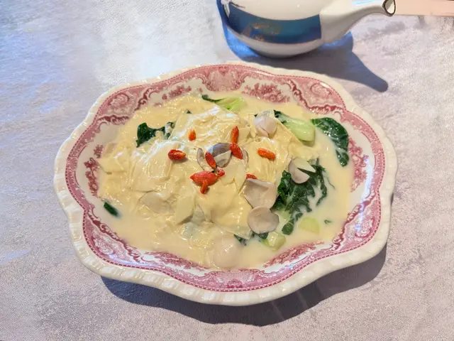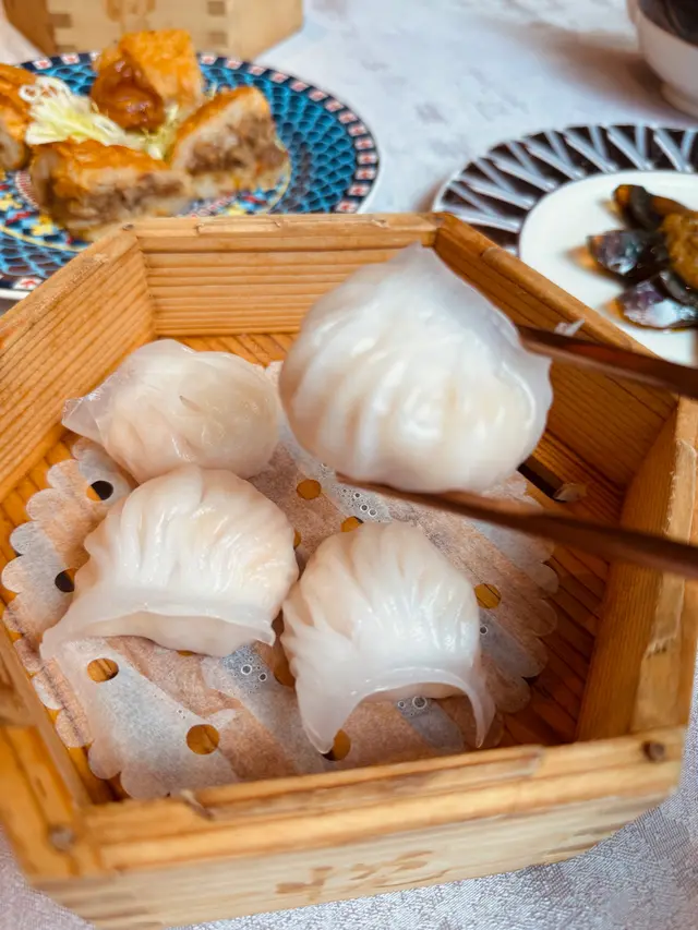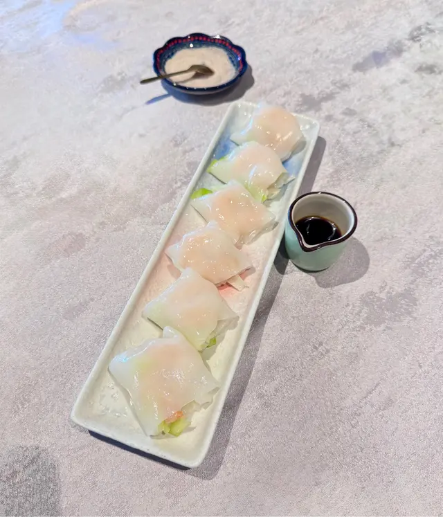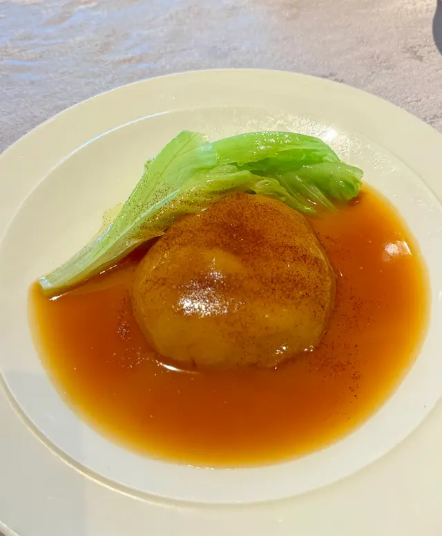 好友茶聚,「健康」小姐建議到此食府,因為早前的用餐體驗良好。館子空間闊落,但人流稀少,現時經濟環境不佳,冷清的場面經常可見。食物選擇非常多,想吃的點心和小食應有盡有。然而點心並不便宜,細問之下,食府屬某飲食集團旗下食肆,入會可享八折優惠,可是入會要數千元,除非經常在相關食肆用餐,否則並不划算。菜式的亮點是腐皮,腐皮是否來自京都不得而知,但盛載小白菜的碟子鋪滿了柔軟的腐皮,腐皮和小白菜同樣吸滿了上湯的味道,非常味美。淮山很大也很厚,一看便知必定是日本貨色,當然內地產品也有其特色,但香煎還是日本淮山較為合適。淮山微脆帶點粉糯,加上豉油的醬香,大家都很喜歡。北菇與豚肉一向是燒賣餡料的良配,北菇是瘦物,富菌香之餘也可平衡豚肉的油膩,燒賣頂部更以黑魚子襯托,旨在提升燒賣的身價但對鮮味作用不大。蝦腸蒸得晶瑩,韭黃與蝦仁均清晰可見,蝦仁鮮甜爽彈,韭黃的香氣為腸粉更添層次。「為食貓」閨蜜發現有煎糯米雞供應,便嚷着要點來品嚐,沾了蛋液的糯米雞煎得金黃微焦,咬下去的時候,香脆的外層與軟糯的中層相互交織,口感層次很是豐富。芋盒的造型像朵小花,精緻且小巧,花芯是完整的帶孑粒綴着黑魚子,海鮮的風味為尋常的芋盒帶來豐富的甜香。柚皮色如琥珀,上桌時被光亮的鮑汁環繞,柚皮上灑了少量蝦子,而且燜得柔軟蓬鬆,質地如海綿一樣吸滿了湯汁,味道鮮美。今日大家都很饞嘴,吃了多款點心之後仍點了炒飯作結尾。因為健康理由,平常很少以鹹魚入饌,但偶爾在外食的時候能嚐到鹹魚的特有風味,便感覺滿足,況且炒飯也算不錯,足夠滿足大家的胃口。…查看更多