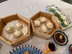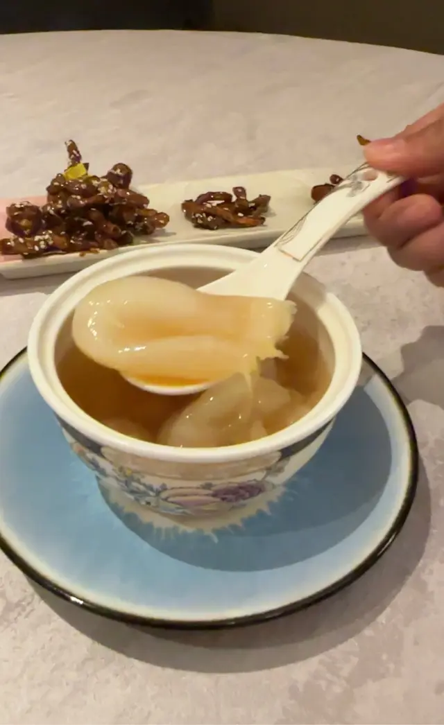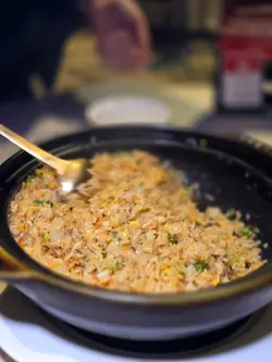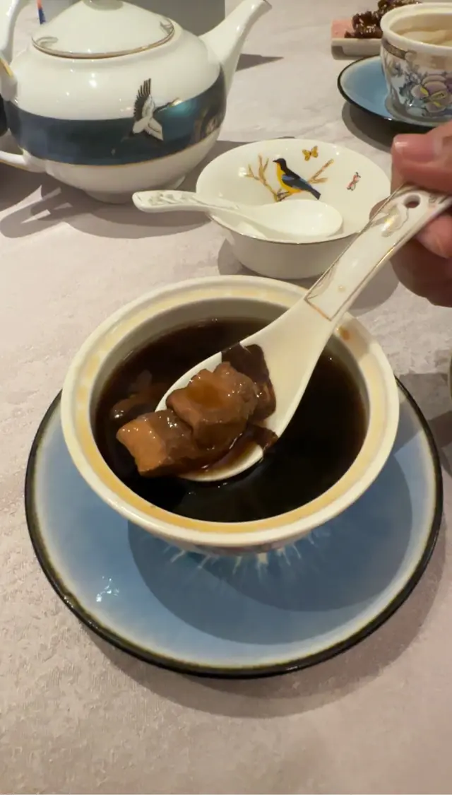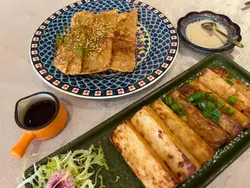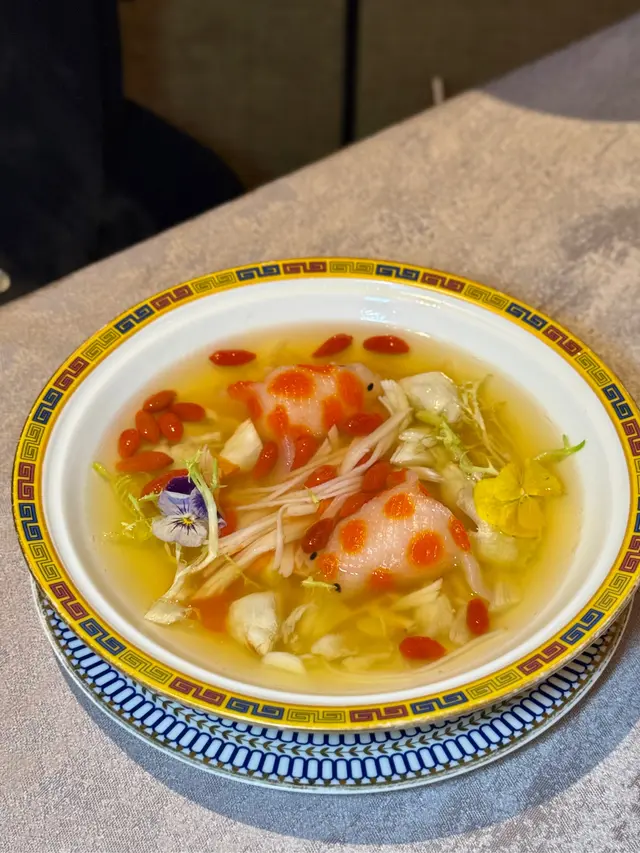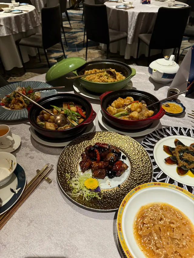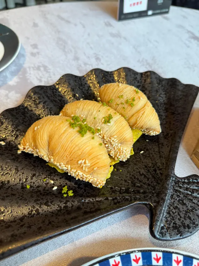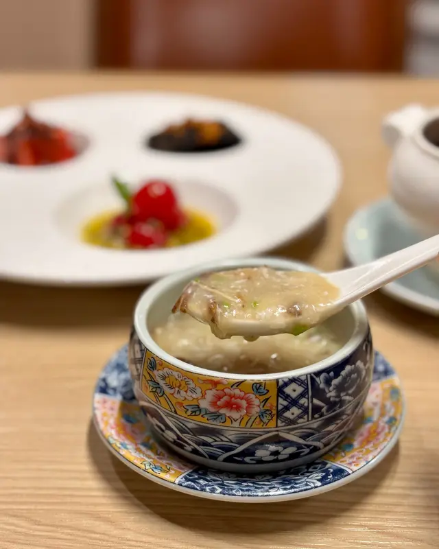 好友茶聚,「健康」小姐建議到此食府,因為早前的用餐體驗良好。館子空間闊落,但人流稀少,現時經濟環境不佳,冷清的場面經常可見。食物選擇非常多,想吃的點心和小食應有盡有。然而點心並不便宜,細問之下,食府屬某飲食集團旗下食肆,入會可享八折優惠,可是入會要數千元,除非經常在相關食肆用餐,否則並不划算。菜式的亮點是腐皮,腐皮是否來自京都不得而知,但盛載小白菜的碟子鋪滿了柔軟的腐皮,腐皮和小白菜同樣吸滿了上湯的味道,非常味美。淮山很大也很厚,一看便知必定是日本貨色,當然內地產品也有其特色,但香煎還是日本淮山較為合適。淮山微脆帶點粉糯,加上豉油的醬香,大家都很喜歡。北菇與豚肉一向是燒賣餡料的良配,北菇是瘦物,富菌香之餘也可平衡豚肉的油膩,燒賣頂部更以黑魚子襯托,旨在提升燒賣的身價但對鮮味作用不大。蝦腸蒸得晶瑩,韭黃與蝦仁均清晰可見,蝦仁鮮甜爽彈,韭黃的香氣為腸粉更添層次。「為食貓」閨蜜發現有煎糯米雞供應,便嚷着要點來品嚐,沾了蛋液的糯米雞煎得金黃微焦,咬下去的時候,香脆的外層與軟糯的中層相互交織,口感層次很是豐富。芋盒的造型像朵小花,精緻且小巧,花芯是完整的帶孑粒綴着黑魚子,海鮮的風味為尋常的芋盒帶來豐富的甜香。柚皮色如琥珀,上桌時被光亮的鮑汁環繞,柚皮上灑了少量蝦子,而且燜得柔軟蓬鬆,質地如海綿一樣吸滿了湯汁,味道鮮美。今日大家都很饞嘴,吃了多款點心之後仍點了炒飯作結尾。因為健康理由,平常很少以鹹魚入饌,但偶爾在外食的時候能嚐到鹹魚的特有風味,便感覺滿足,況且炒飯也算不錯,足夠滿足大家的胃口。…查看更多