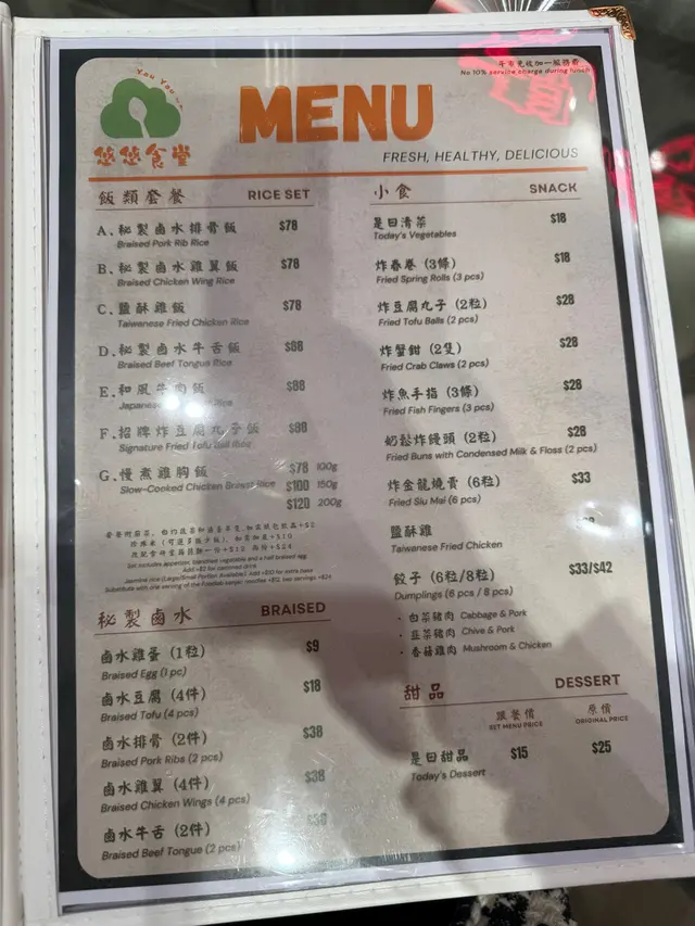 悠悠食堂 (鲗鱼涌) 网址: https://s.openrice.com/QrLS0yyY3m0 地址: 香港鰂魚涌海光街11號地下3號舖 电话: +852 62787165
