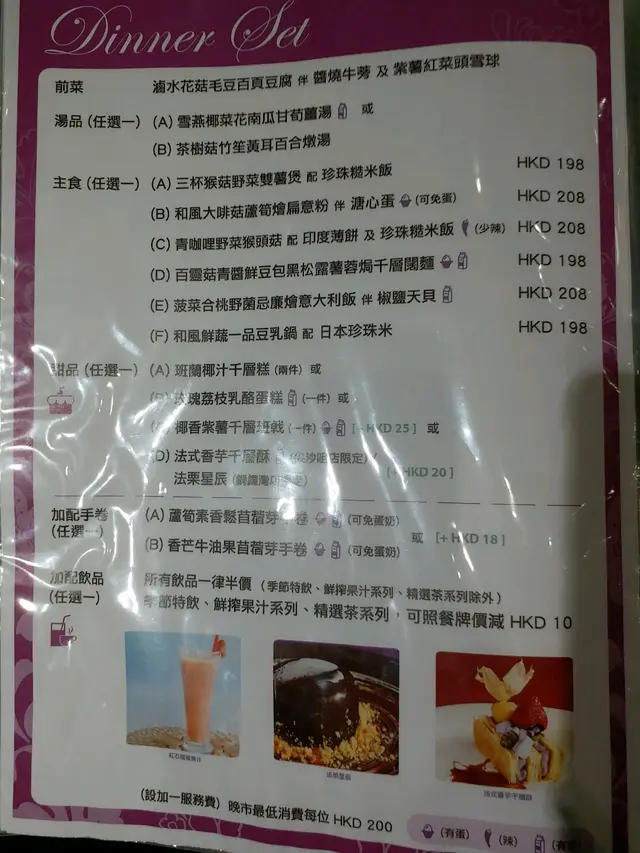 悠蔬食 (渣甸中心) (铜锣湾) 网址: https://s.openrice.com/QrLS0JQO600 地址: 香港銅鑼灣渣甸街50號渣甸中心25樓 电话: +852 35656393