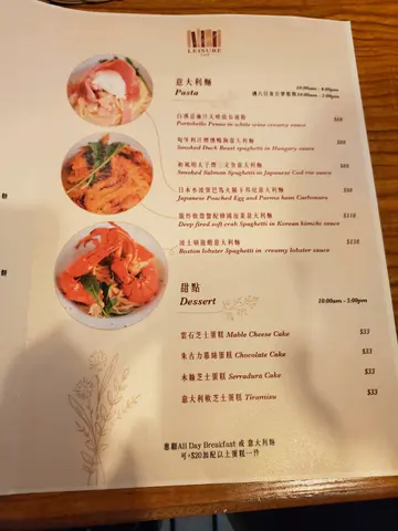 元朗国有间黄cafe叫做leisure悠当日catgirl仲未收皮女朋友就系睇完话好想去呢一间餐厅因为有all day breakfast食地点系国家火车站既对面要过去就有d复杂而家好似起紧天桥将来算系可以轻松去到餐厅唔算大除左出面bar台入面都系得六七张台不过环境唔错书柜上面有漫画有小说有文宣座位就有少少似学校凳仲有好多植物比港女打卡用餐厅除左all day breakfast仲有意粉类呢个系水波蛋卡邦尼78蚊以白汁为主都系不过不失all day breakfast有三款女朋友拣左轻怡朝日98蚊四款食物摆位几对称有大啡菇沙律果麦乳酪杯紫芋甘栗饼芝士长通粉望落去吸引过碟意粉而且仲系素食岩晒选择困难既港女最后系云石芝士蛋糕除左个样靓少少之外都系正正常常饮品要半价先有当时堂食未洗加一几样加埋二百三左右都算正常水平起码叫做有份甜品all day breakfast都算大份黄侍应都有礼貌不过餐厅净系做日头生意夜晚无得食睇番原来悠既老阁旗下仲有花火和食等几间既和洋式餐厅亦都有上过黄大地一直都有想去红磡试下…查看更多