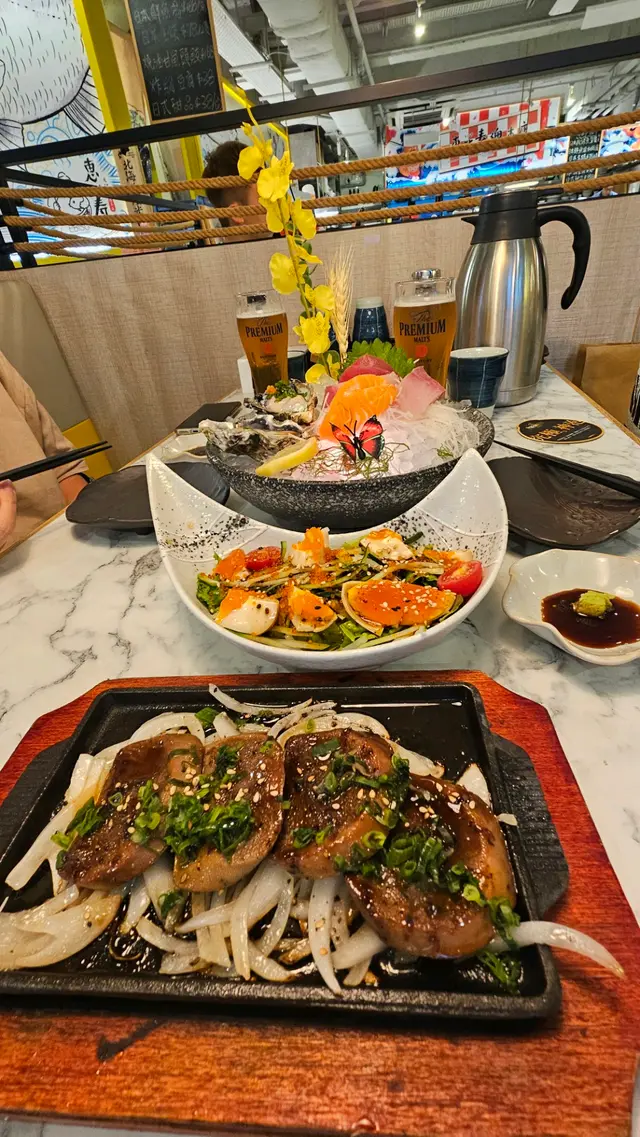 🍱😋 嘩~呢碗灸燒海鮮丼一上枱真係好搶眼!色彩繽紛到好似打卡神器咁📸✨,啲食材睇落都好足料,令人即刻想開餐!🔥 裡面有灸燒三文魚、蝦、扇貝同章紅魚。不過講真,三文魚燒得有啲過火🔥,食落去太軟腍,冇咗啲口感,少少可惜😕。蝦就唔錯喇,鮮甜又夠多🦐,食完有種「嘩~好滿足啊」嘅感覺💯!🧐 扇貝就比較細粒,味道偏淡,冇乜驚喜😐。章紅魚就一般啦,唔差但都唔算突出,感覺同出面餐廳差唔多🐟。飯嘅份量啱啱好🍚,配埋啲海鮮一齊食,味道都算唔錯👍。🍣 仲有嗰個三色刺身拼盤(油甘魚、扇貝、三文魚)真係驚喜位!新鮮到爆💥,入口即化,鮮味勁足~食完有種「嘩!呢啲先叫刺身!」嘅感覺😍!👀 如果你嚟呢間餐廳,我真係會建議你主攻刺身,味道真係出色到令人回味無窮~下次我都想再試多幾款刺身,睇下有冇其他寶藏🧭!📝 總括嚟講,今次食得幾開心,雖然丼飯有啲小瑕疵,但整體都值得一試。建議食刺身類~😄🍽️…查看更多